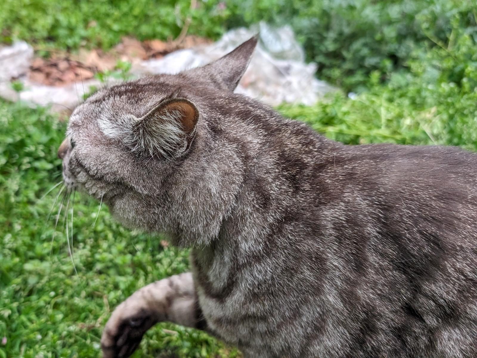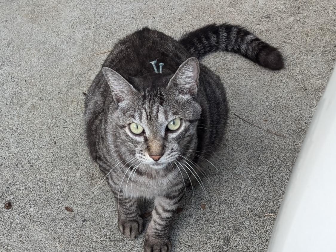ぽっちゃり体型のサバトラです。