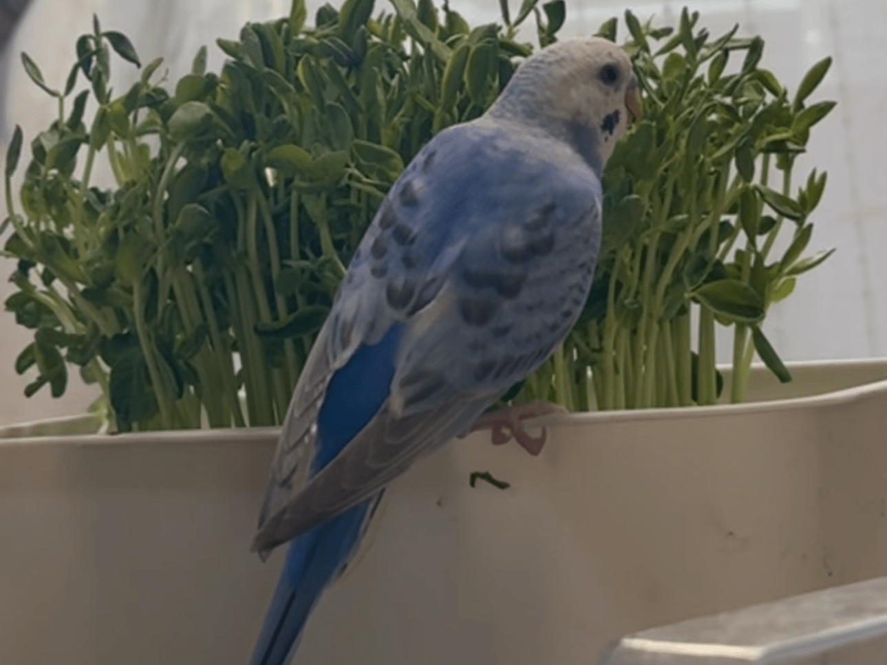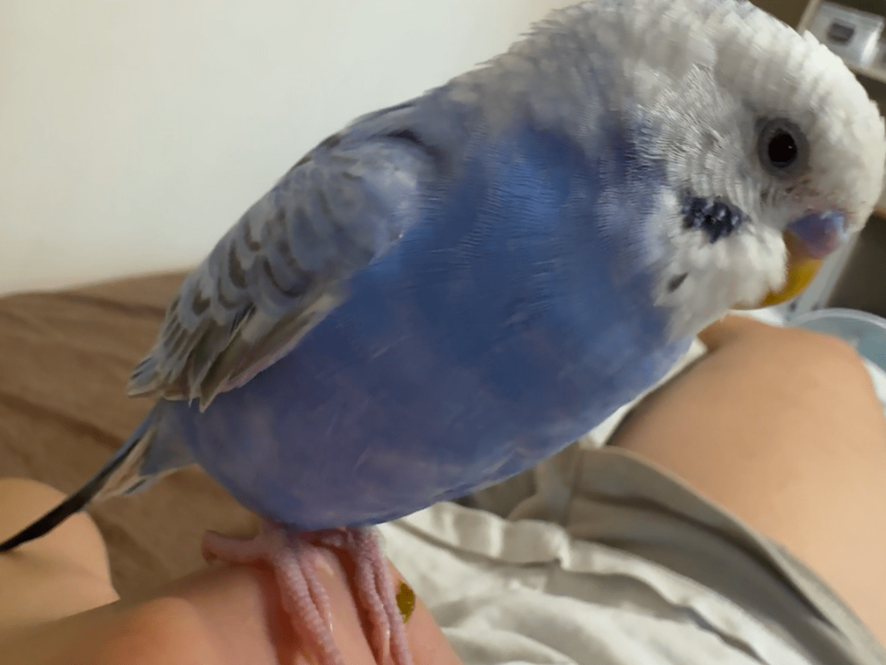 青色のセキセイインコで人馴れしていて指を見せたら乗ってきます。よくカシャ、ちゅちゅちゅちゅ、ピロロン(LINEの電話切る音)、ププー!という音で鳴きます。本当にお願いします。。。(;;)
