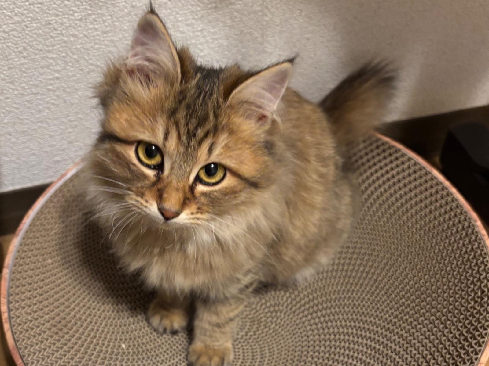 キジトラで長毛、首の辺りがライオンみたいなタテガミになっています。