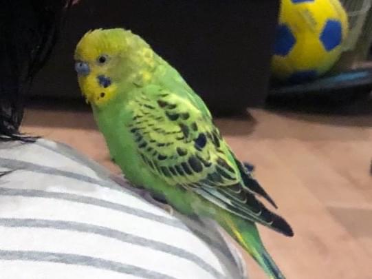 2020年5月9日夕方に世田谷区岡本から逃げました。体は緑色、顔は黄色の人懐こい手乗り&お喋りインコです。肩の上が大好き。「コイン」「おはよー」などとよく喋り、首を振って甘えてきます。目と鼻の周りの毛が薄いです。見かけたらぜひ情報をお寄せください。