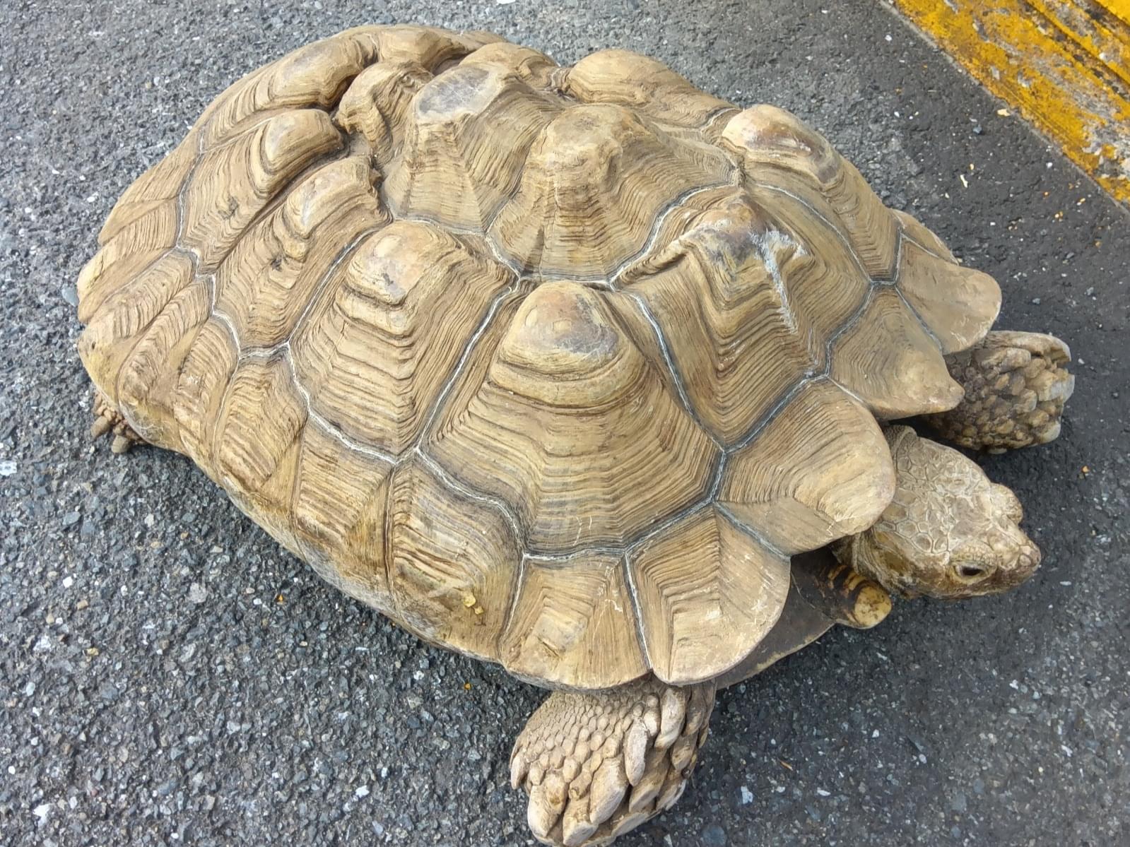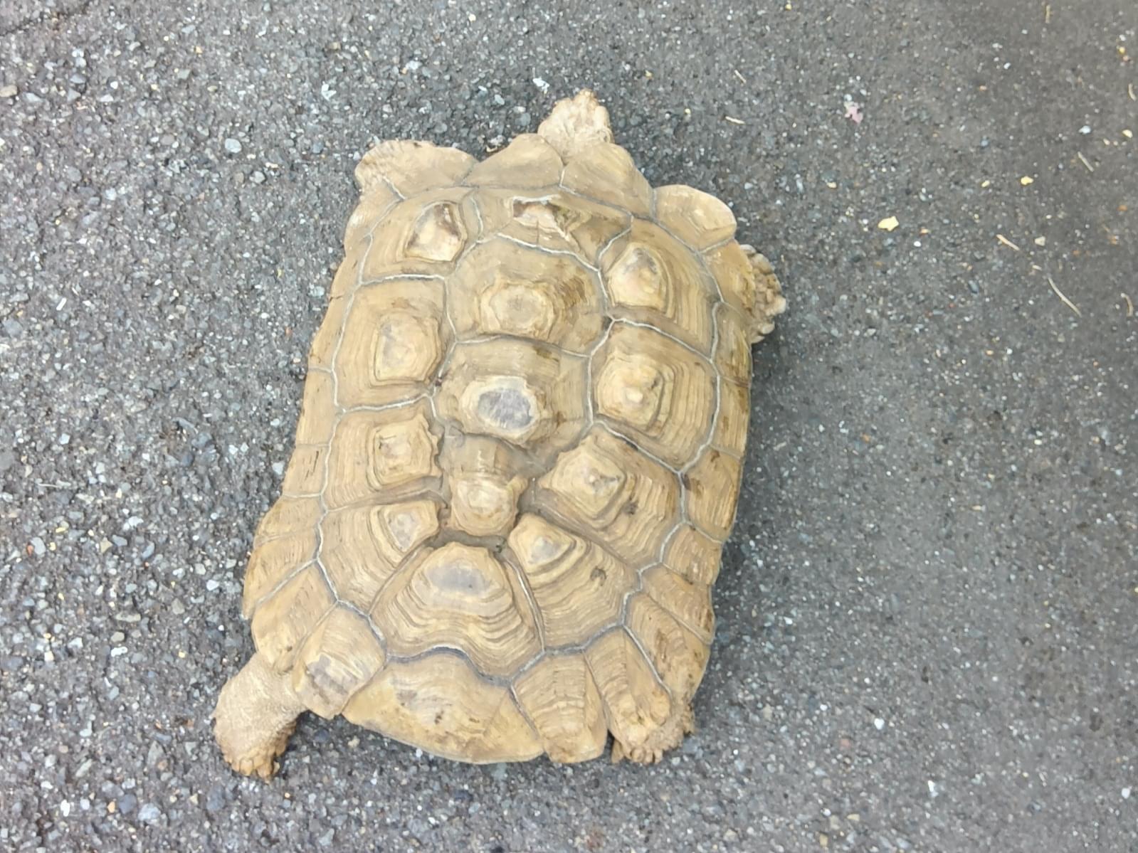 多摩市立総合体育館付近で、体長約50~60cm、重さ20kgほどのカメ(リクガメ)を目撃しました。多摩市警察にて引渡し済です。