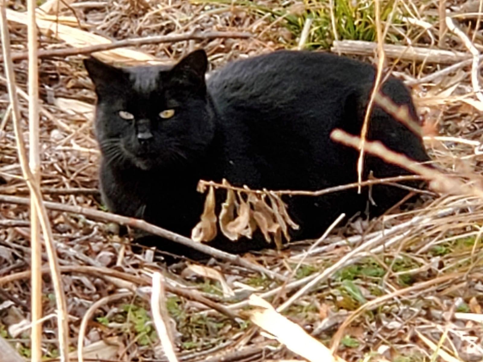 土手の下あたりで朝、まるまっていました。犬が一緒なのであまり近寄らなかったのですが、毎日の散歩コースで初めて見かけた猫ちゃんだったので迷子かな?と思いました