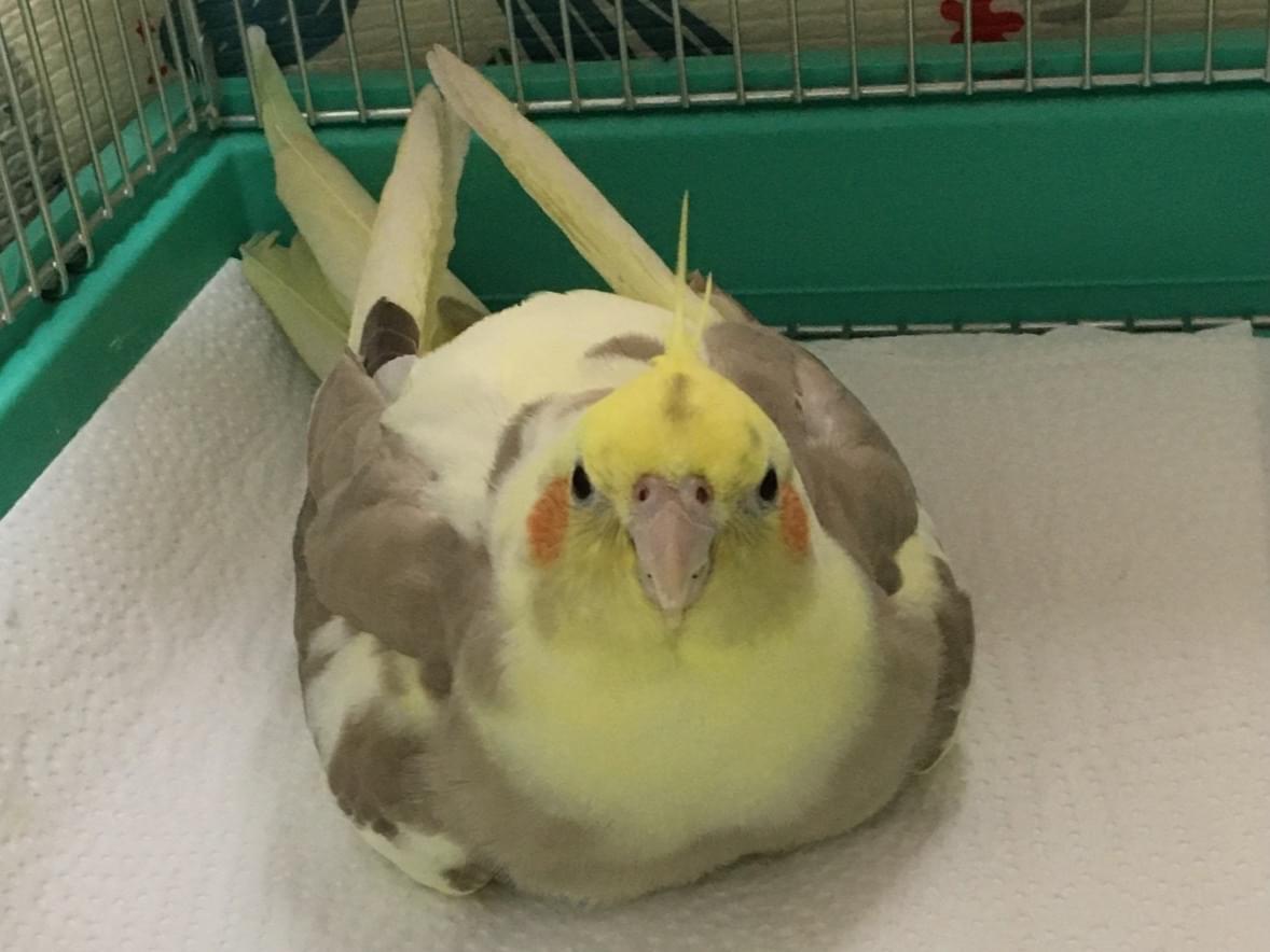 頬はオレンジ色、体は黄色と薄いグレーの斑模様です。 おしゃべりはできませんがとても人懐こい性格です。些細な情報でもいいので、ご連絡お待ちしています。どうぞよろしくお願いいたします。