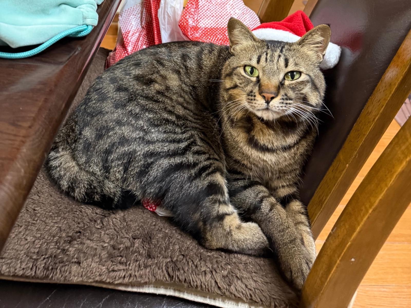 赤い首輪をしていますが(鈴無し)、見えにくいと思います。