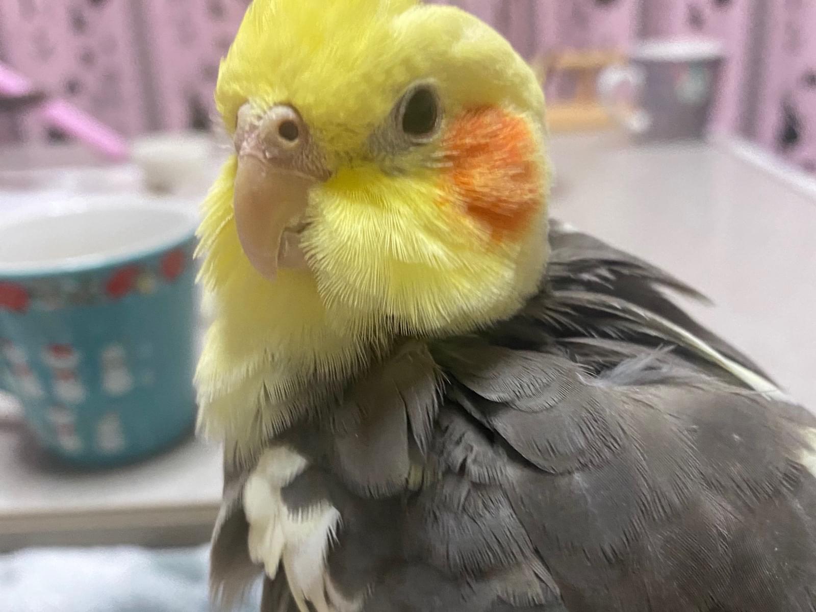 手乗り、肩に乗ります。低めの声で「ピューイ」と鳴きます。