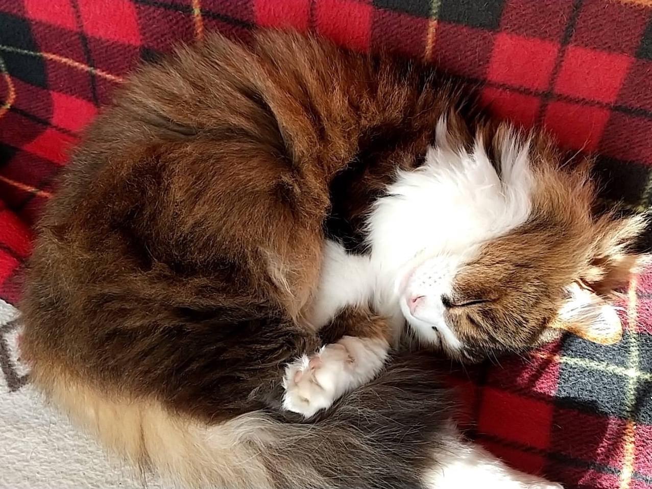 メスの猫で、体長は約30cm、ふさふさした毛が特徴です。首輪は付けておらず、避妊済です。