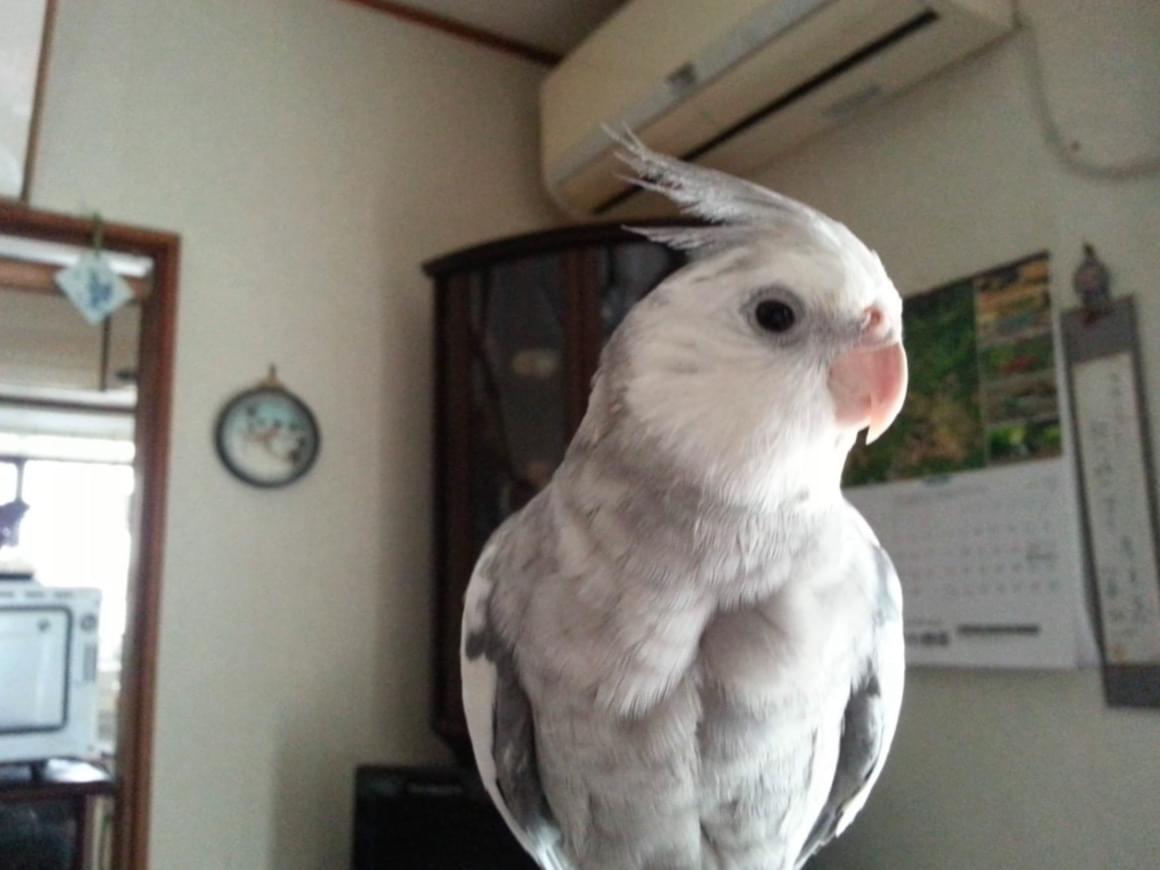 グレーのオカメインコちーすけが不注意で外に出てしまいました