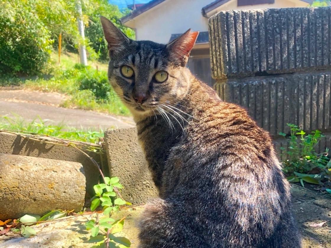 尻尾が丸まってるキジトラ