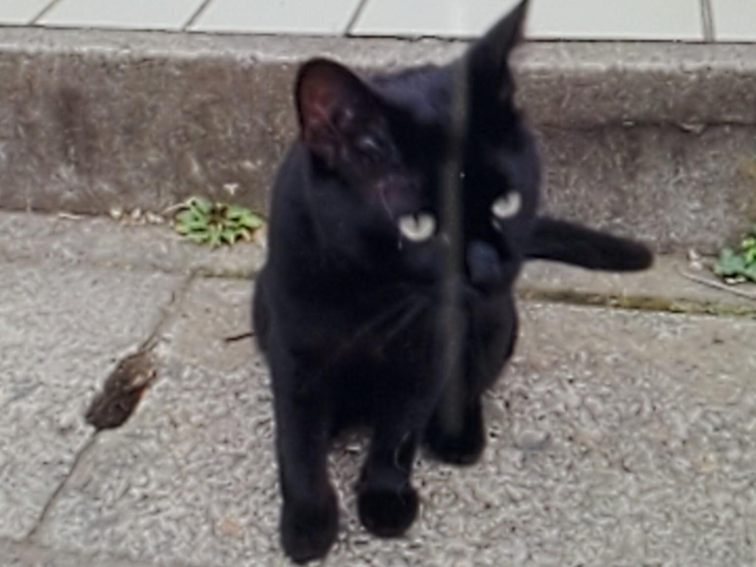 薄いピンクの首輪(ノミ取り)をした黒猫を探しています
