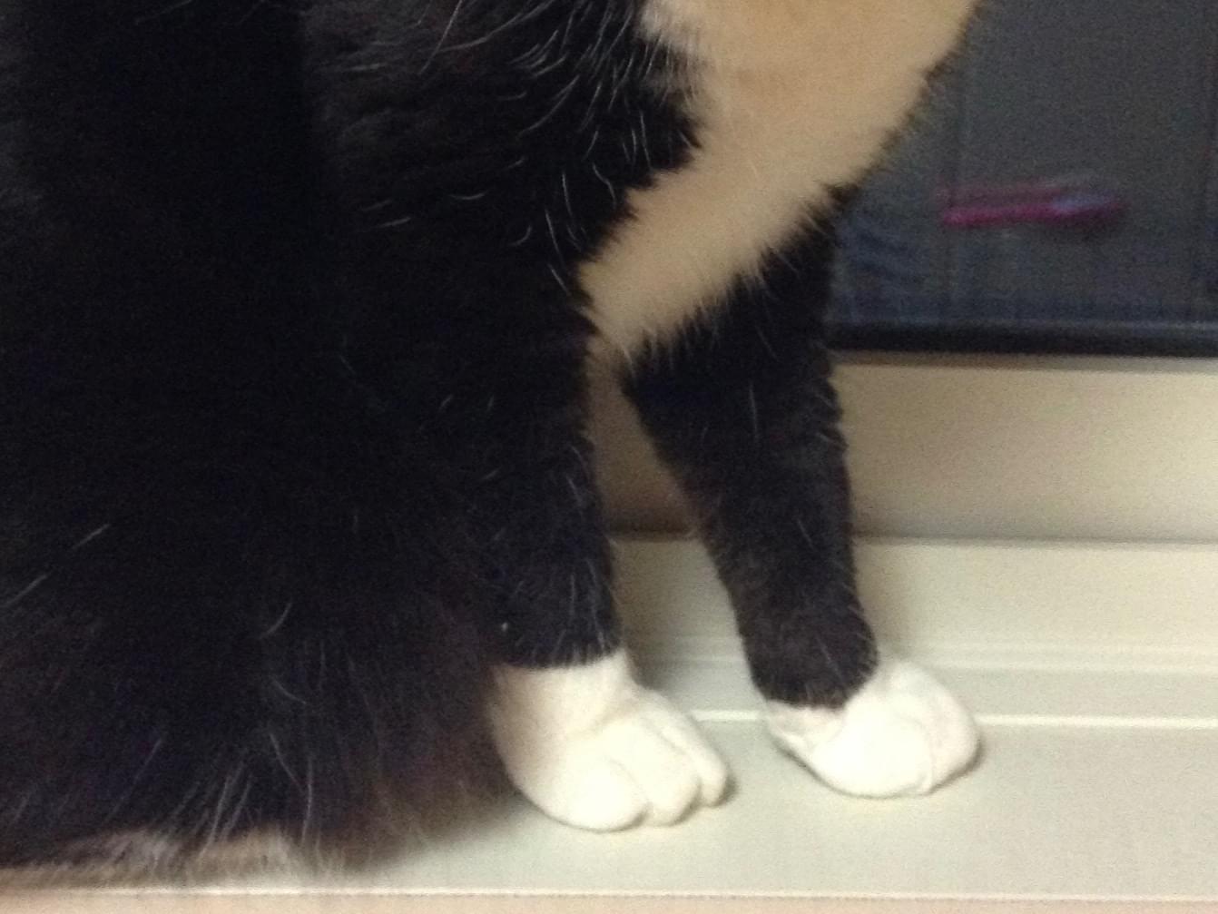 ・ハチワレの靴下猫(白い靴下を履いているような両前足をしています。)