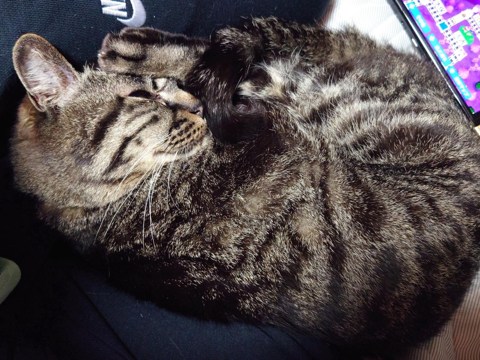 紫の首輪をつけている、キジトラのオス猫が 槙塚台で迷子になりました。