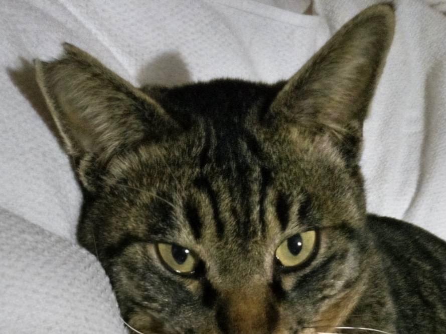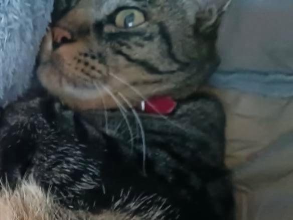 黒っぽい全身トラ柄の猫を探しています。右耳にV字のカット有ります。