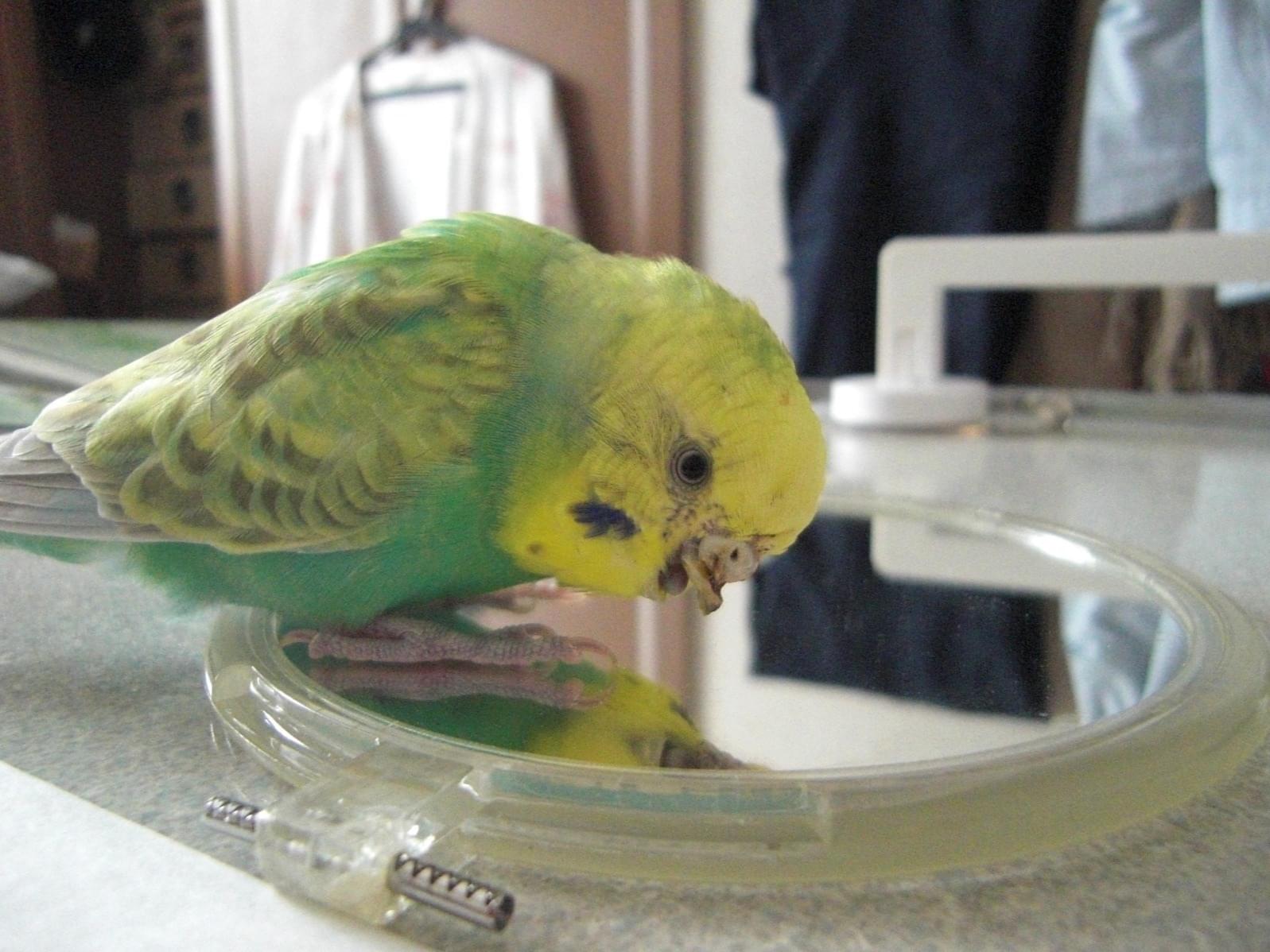 セキセイインコ薄い黄緑、くちばしに特徴あり