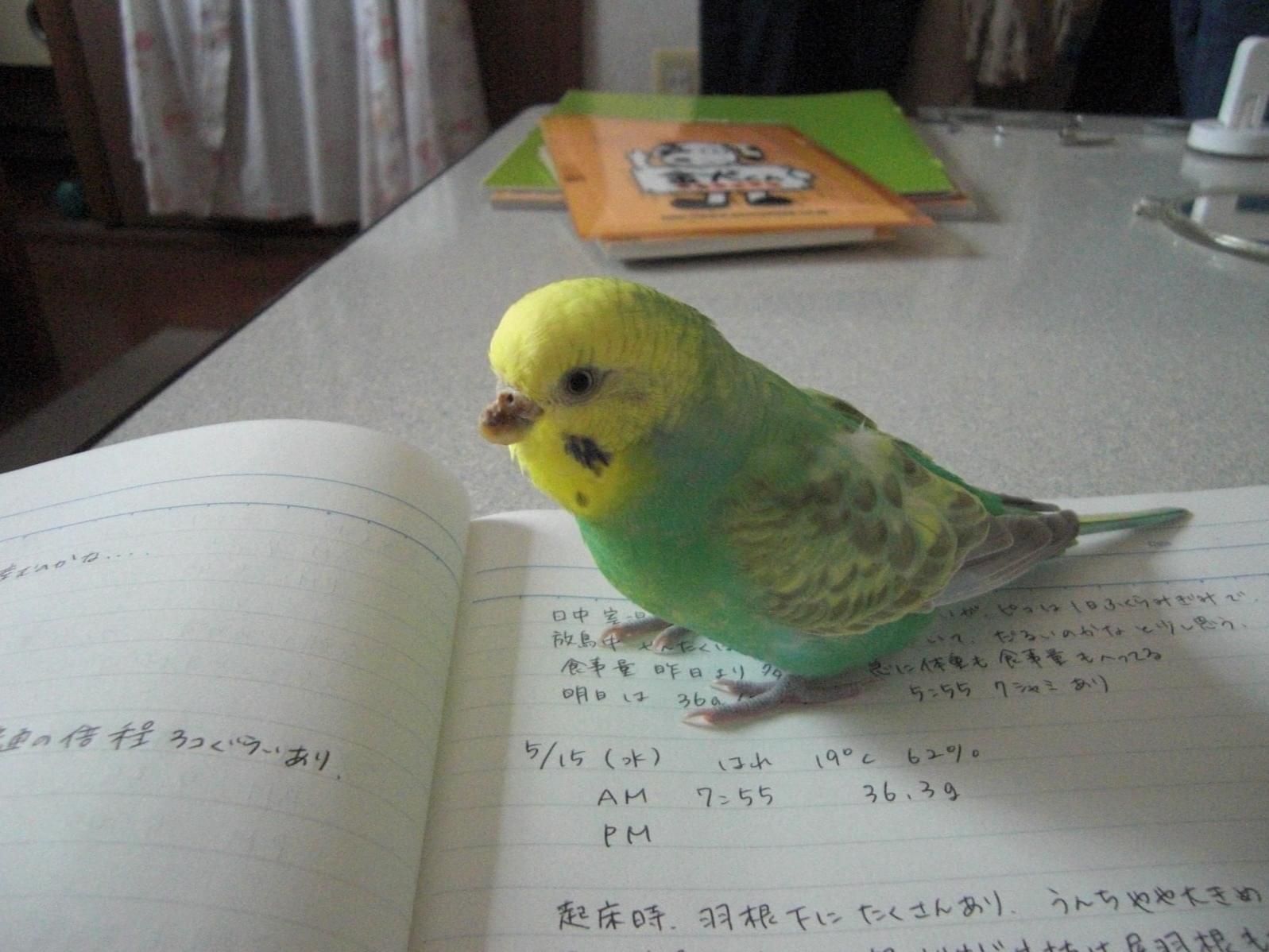 朝8時に逃げました。くちばしゆがんで特徴的です。ピコちゃんと話せます。積極的には来ないかもしれませんが、ごはんを見せれば来てくれるはず。