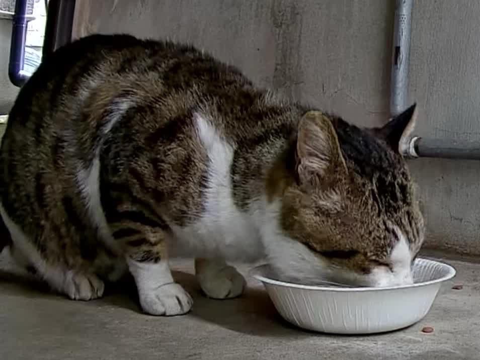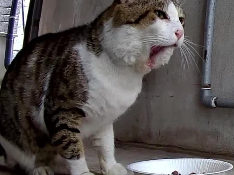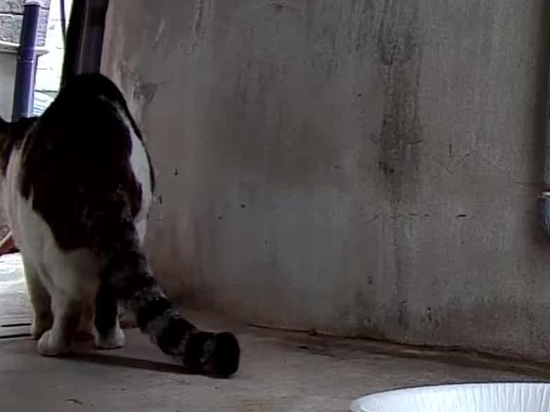 迷子のような今日初めてみる猫ちゃんが防犯カメラに映っていました。尻尾は切れておらず長いこげ茶色のシマシマでした。そんなに大きくなく、中猫程でした。
