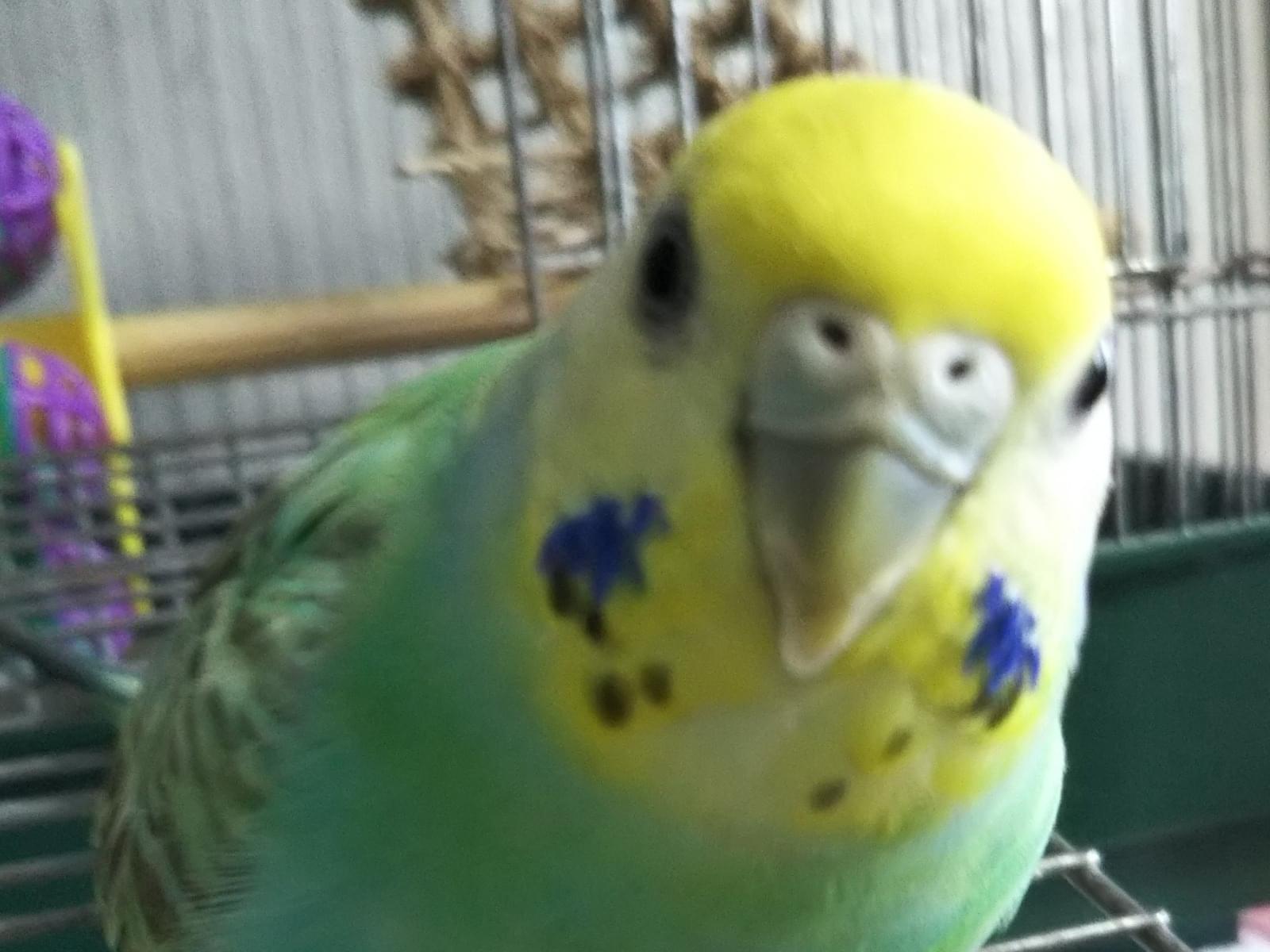 レイと名付けたレインボーカラーのセキセイインコを探してます。頭が黄色、腹と背が緑がかった水色、翼が薄いグレーです。左目の斜め上に少しだけ毛が生えてこない部分があります。