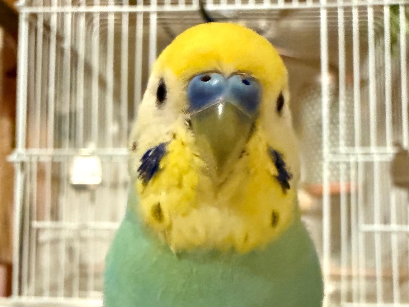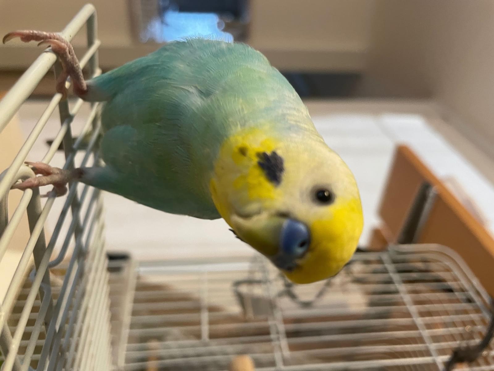 頭が黄色で胴体が水色のセキセイインコを探しています。