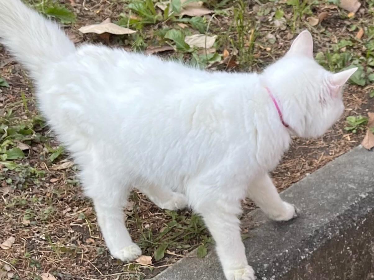 白地にピンクのラインが入った首輪をしています(写真2枚目)