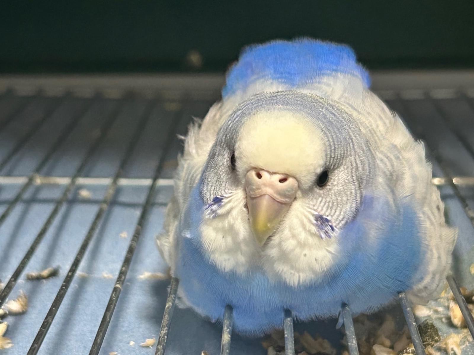 青と白のカラーのセキセイインコで、もうすぐ1歳になるかという年齢です。