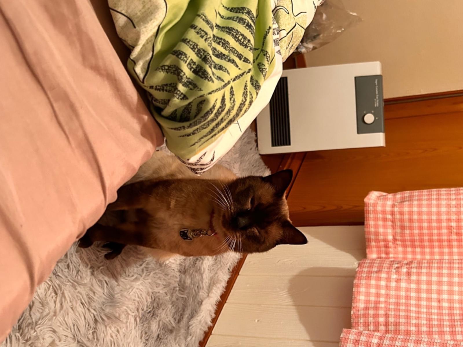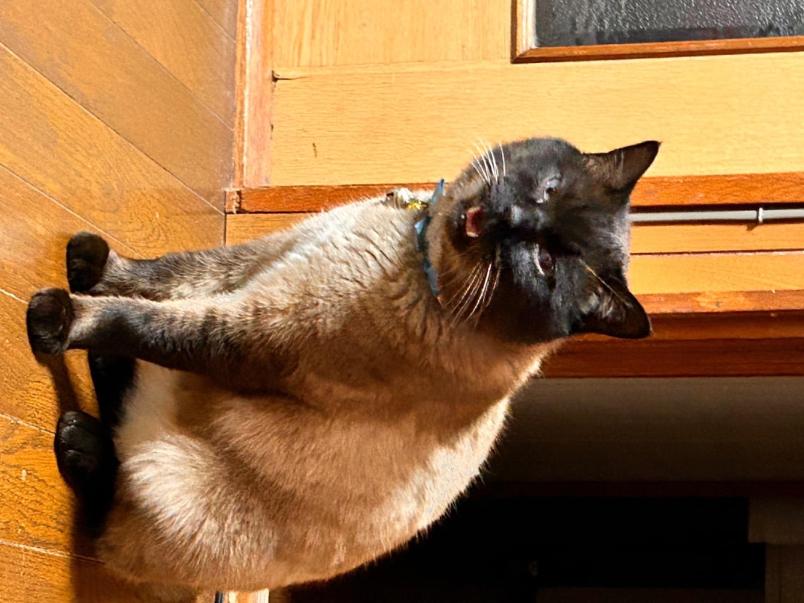 シャム柄の猫で顔と手と足としっぽが黒いです