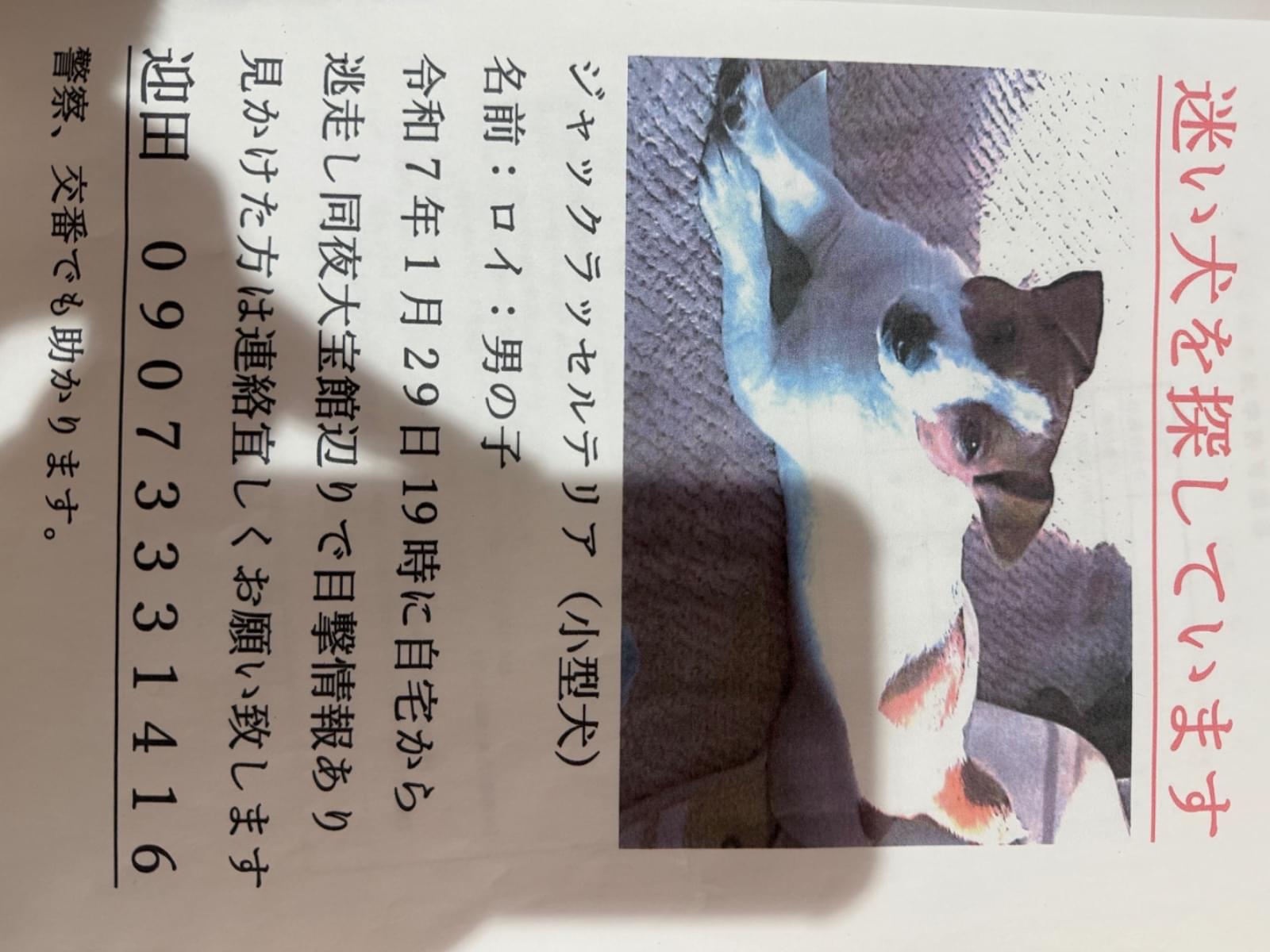 ホーム迷子犬山形県尾の先が黒く毛がない尾の先が黒く毛がない管理編集するポスター掲載終了最終更新日時:2025/02/07 14:34写真情報用件迷子名前ロイ性別オス年齢11歳くらい場所山形県 鶴岡市本町発生日時2025年1月29日(水)飼い主がま説明青のボーダーの服を着ているが脱げている可能性あり連絡先URL未設定掲示板情報交換のための掲示板です。ユーザーからの情報提供、オーナーからの連絡などにご利用下さいませ。まだコメントはありません。トピックを作成する