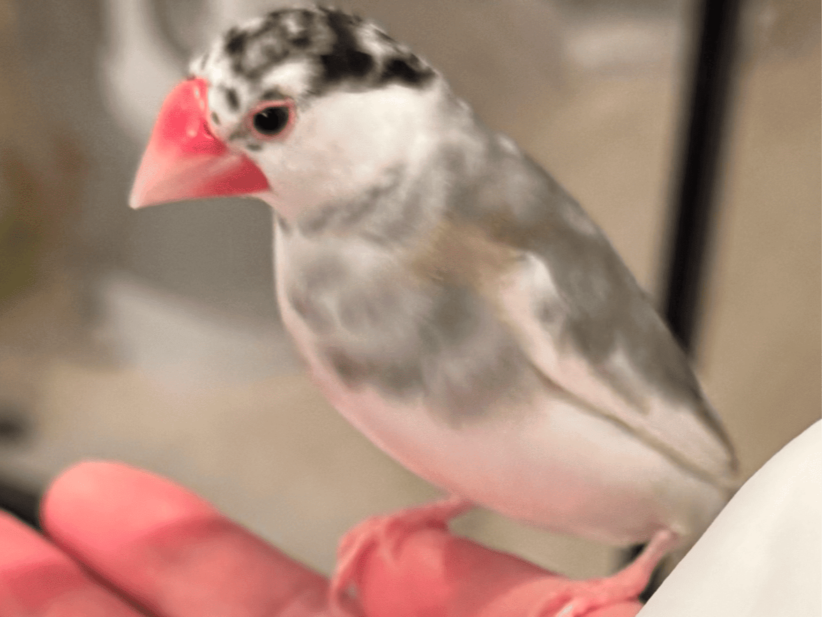 特徴…くちばしは赤寄りのピンク、目は丸っこいです