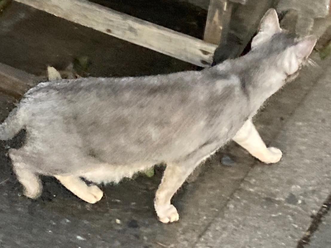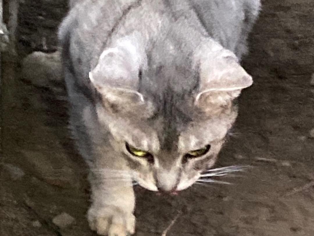 二週間ほど前に国分寺市東元町で全身がグレー(灰色)の猫ちゃんを見かけました。人に警戒心があまりなく、耳カットもされていないため飼猫ちゃんでは?と思い投稿しました。家族が二年前に似た子を見たらしいので、二年以上前から迷子の可能性があります。