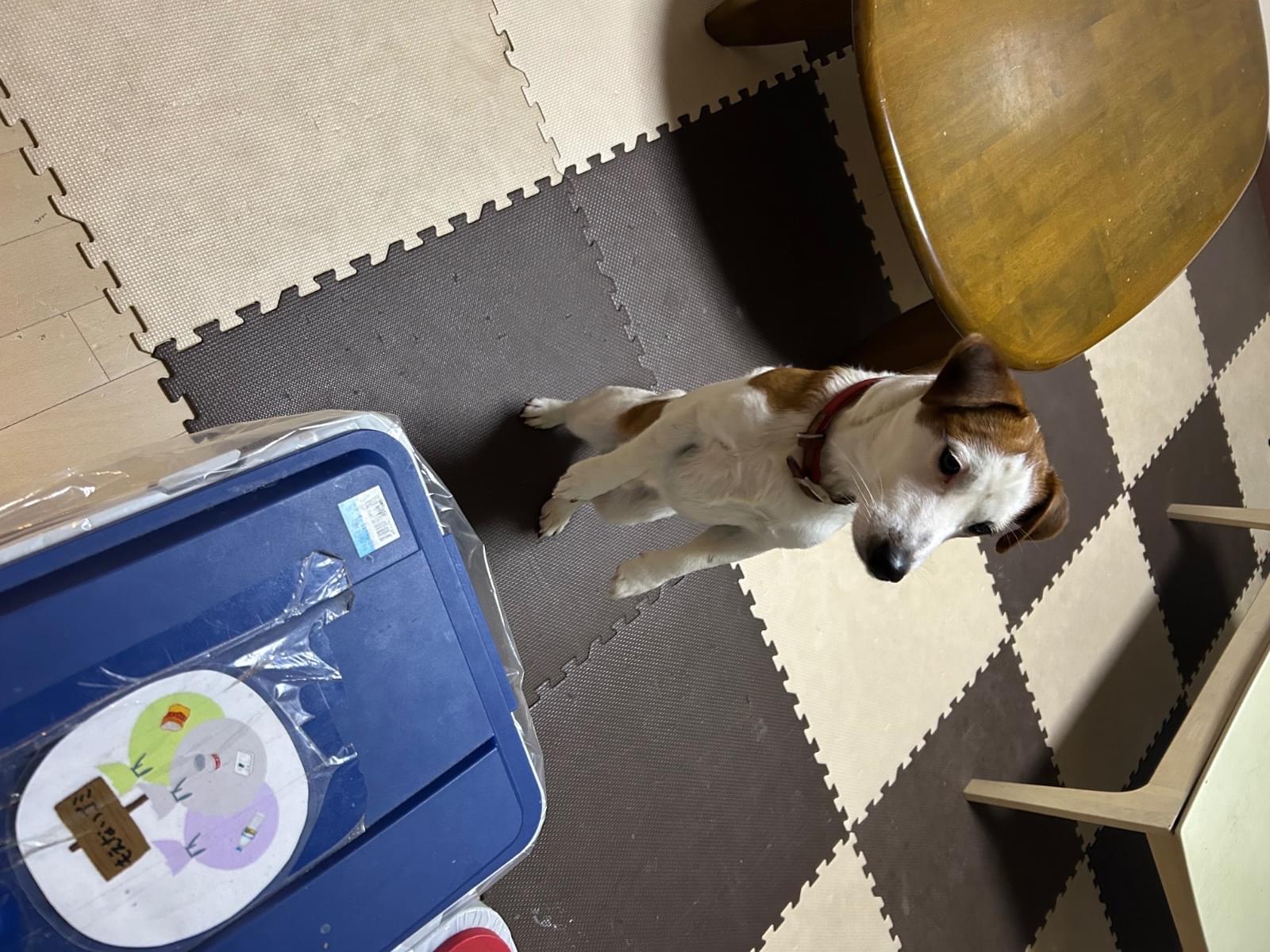 ジャックラッセルテリアだと思われる犬種で、赤色と茶色の皮の首輪をしているオスの犬を見つけ、警察に通報し、保護してもらっています。