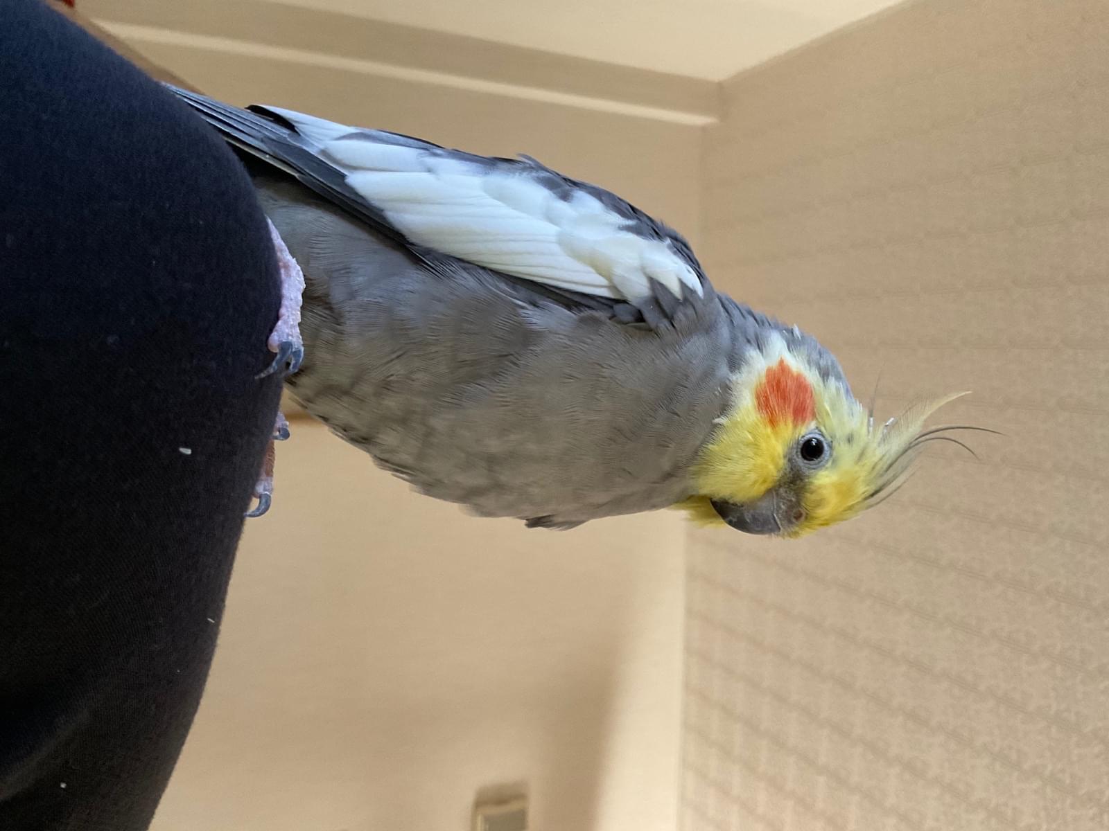後く頭部に1cm程の白い円毛があります。顔は黄色ですが全体的にグレーです。こ