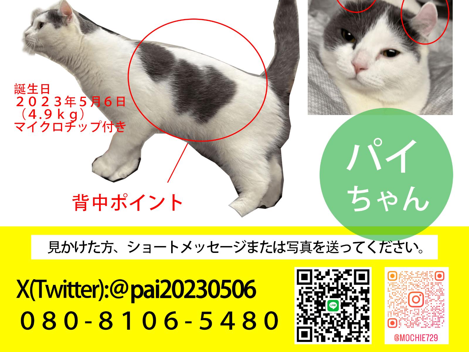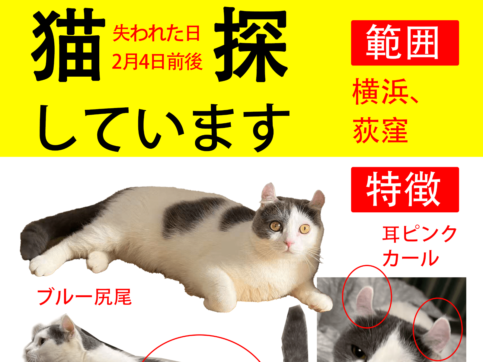 ピンクカールのブルーホワイト猫を探しています パイちゃん
