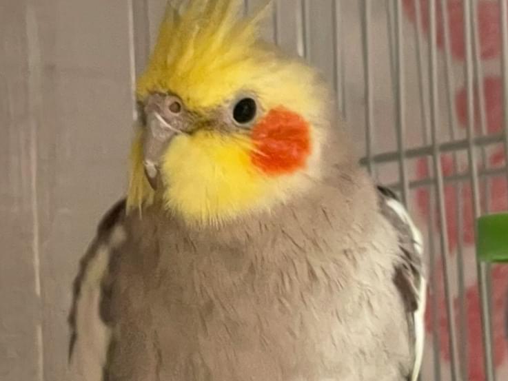 オカメインコのシナモンです。よく肩に乗ってきます。慣れてくると、「しーちゃん、おはよう!」と言ったり、ミッキーマウスのマーチを歌ったりします。宜野湾市真栄原の自宅から逃げてしまいました。情報がありましたら、連絡お願いします。