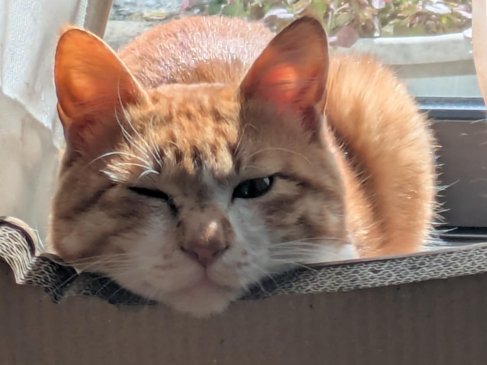 右目が結膜炎になっており、目薬を付けていないので酷くなっていると思われます。