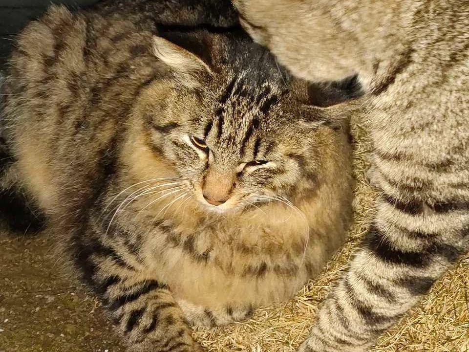 サイベリアン似のキジトラです。ずんぐりむっくりな体型です。