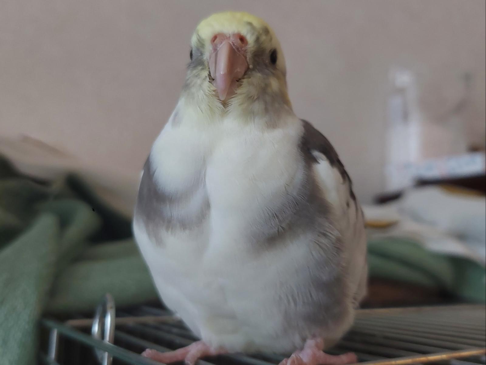 よく歌う子で少し臆病だけど、気の強い部分もあり、余り他人には懐かない感じの子ですが、懐くとなでなでが大好きなオカメインコちゃんです。
