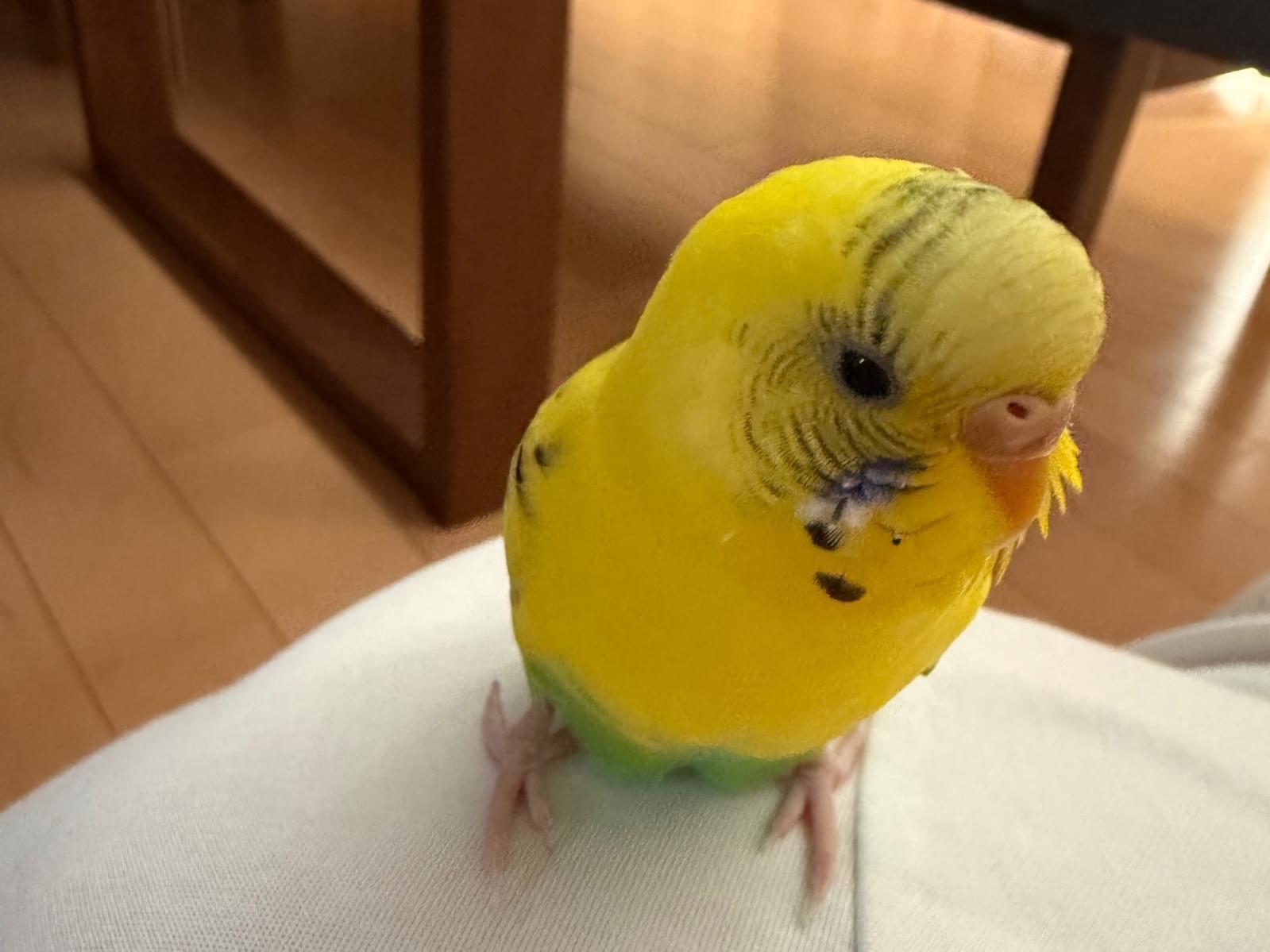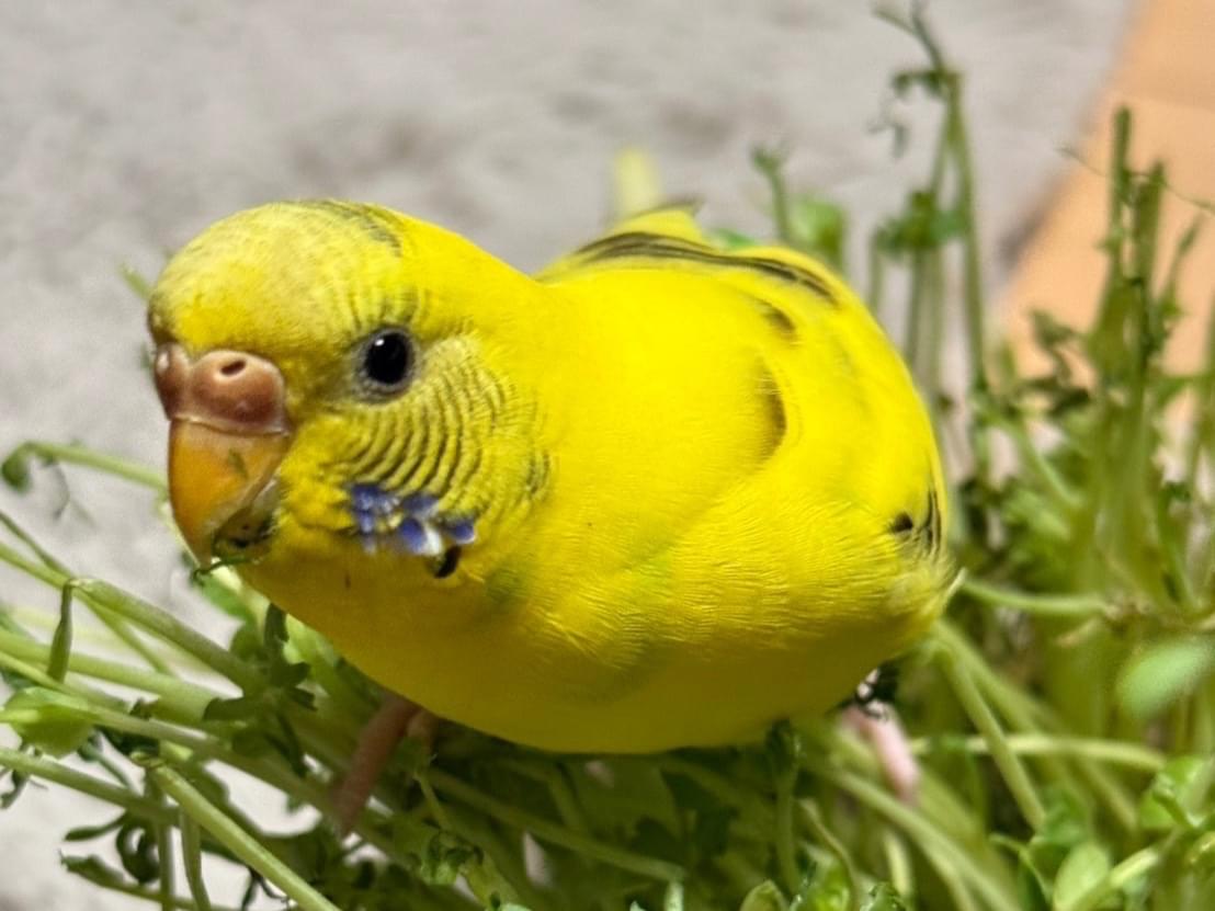 とても活発な子で、良く鳴きますし良く飛び回ります!換羽期も少し落ち着いてきた頃です。頭のてっぺんは黄色いです。知らない人には噛みついちゃうかもしれません。ですがとても甘えん坊です。豆苗が大好物です。