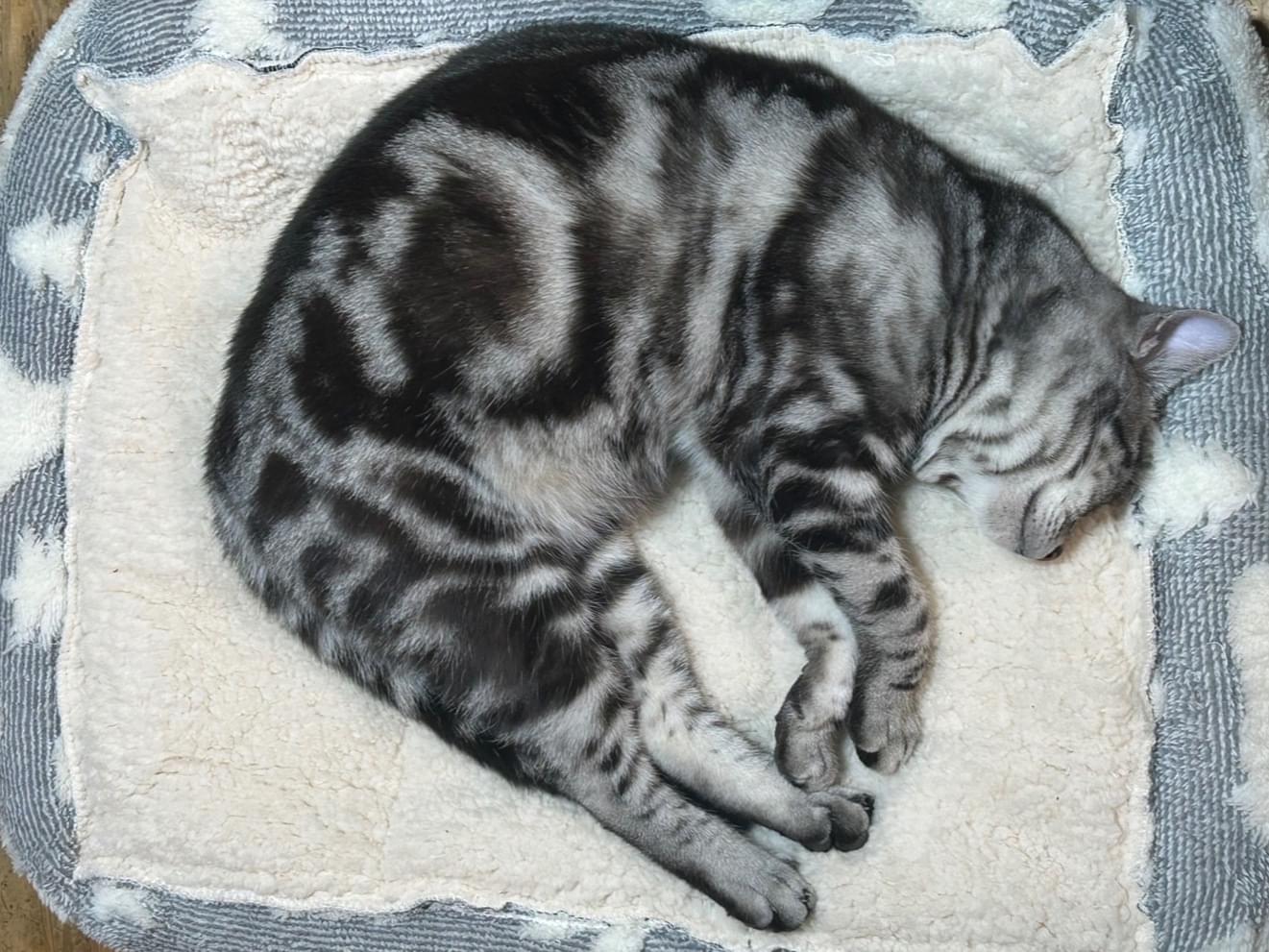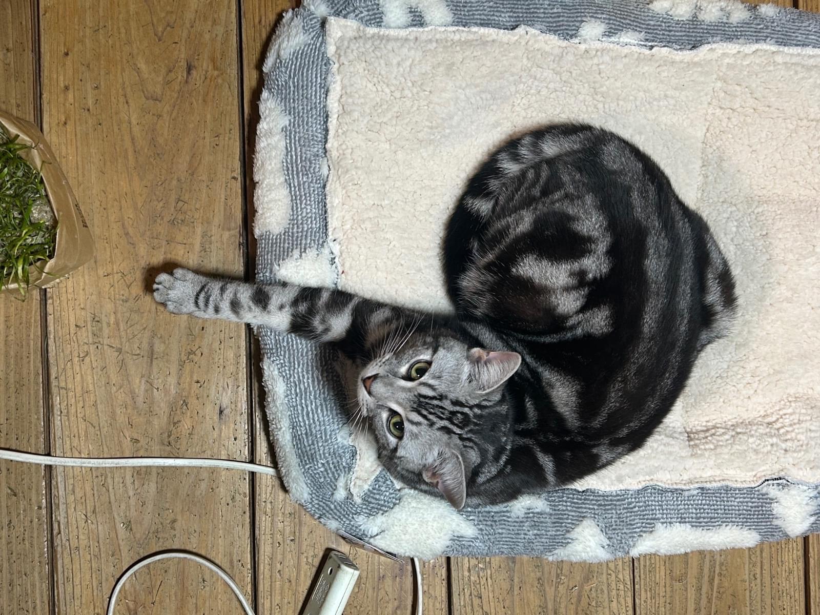 柘植町付近でいなくなりました。年齢は1歳で、まだ幼さ残る顔をしており細身で筋肉質、顔から顎にかけてシュッとしており左側の横腹辺りにCのような柄、右側の横腹辺りに黒猫のような柄があります。人懐っこく遊び好きな猫です。