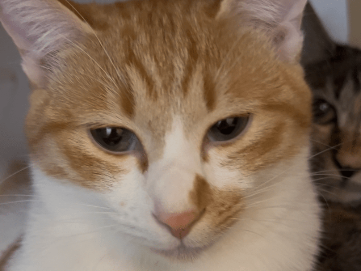 薄茶白尻尾の先が曲がってます。