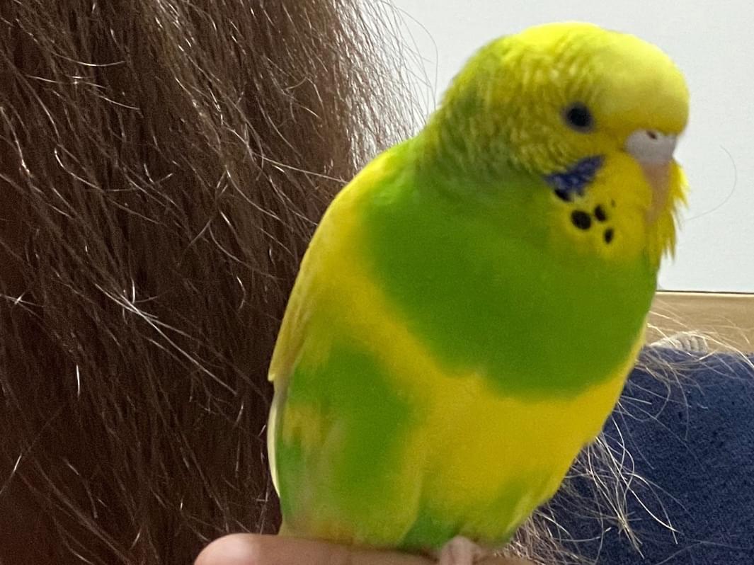 とても人懐っこく、掴もうとすると嫌がりますが指や肩、頭に乗るのが大好きでとにかく人から離れない子です。