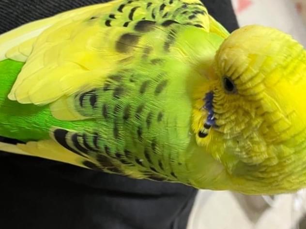黄色と黄緑のメスのセキセイインコです。