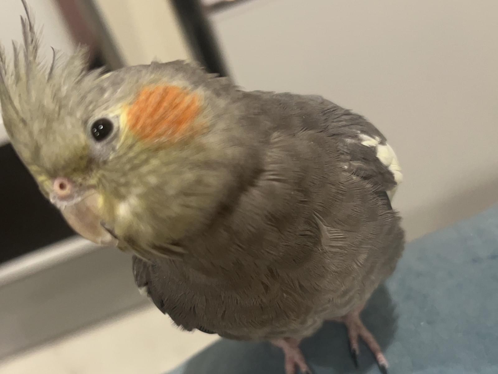 ノーマルのオカメインコで体はグレー、頭部は黄身がかった色味です。