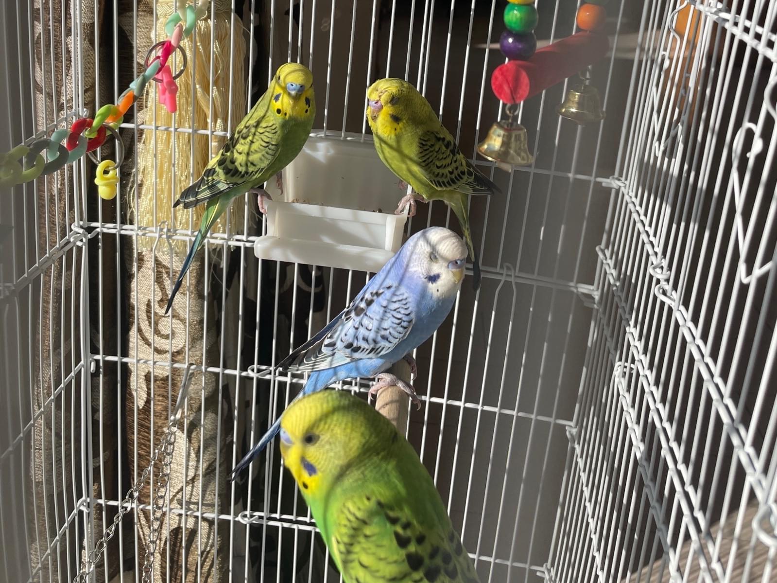 3匹は緑色で、1匹は水色のセキセイインコが今朝ケージのドアを開けて飛んで行ってしまいました。見つかった是非声かけてください。