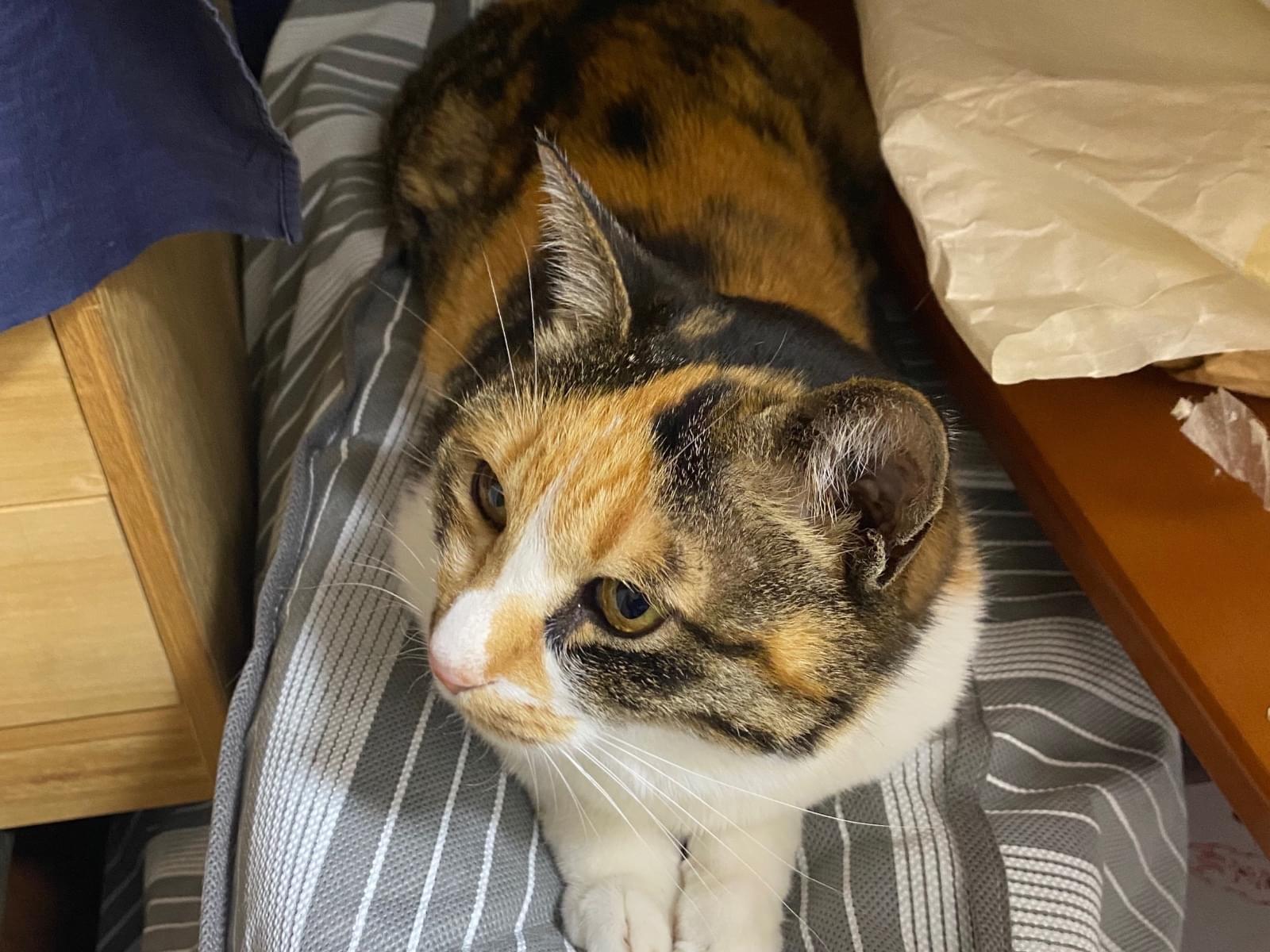 三毛猫、神経質。小柄で細身。首周りとお腹が白で、体は茶色と黒。腿あたりにサバ柄有り。尻尾は長め。鈴のついた赤い首輪をつけてます。川越市古市場、渋井近辺で17日朝から行方不明。いつもは外に出しても帰ってくるので、今回遠くまで行っている可能性が高いです。