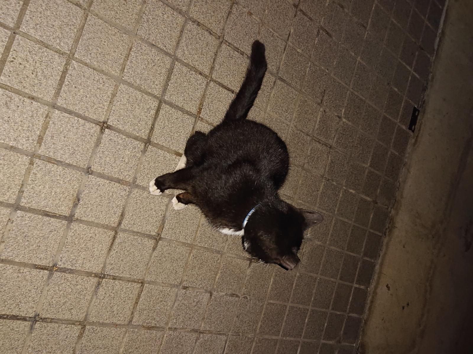 ハチワレの首輪付きの猫を見かけました