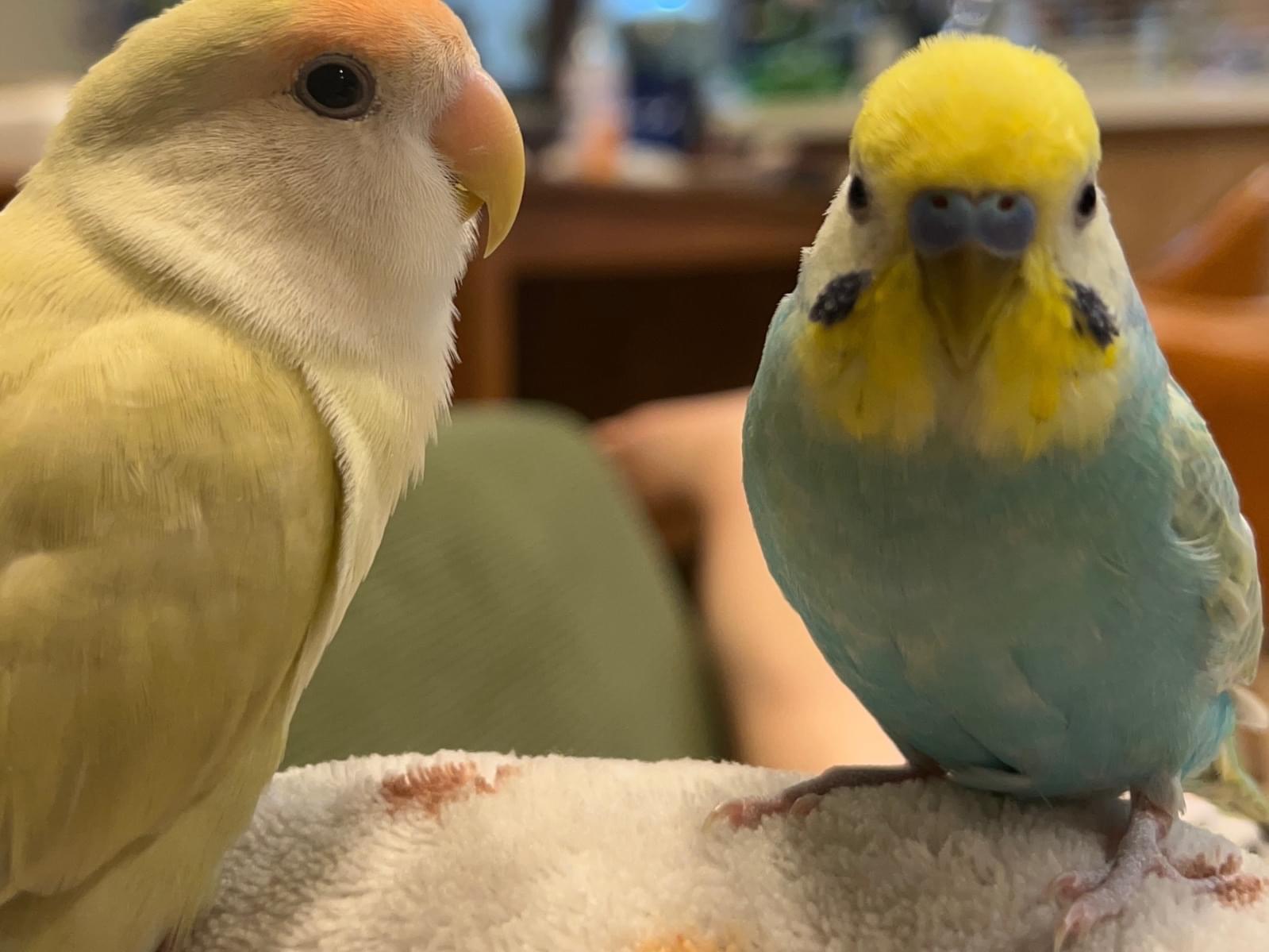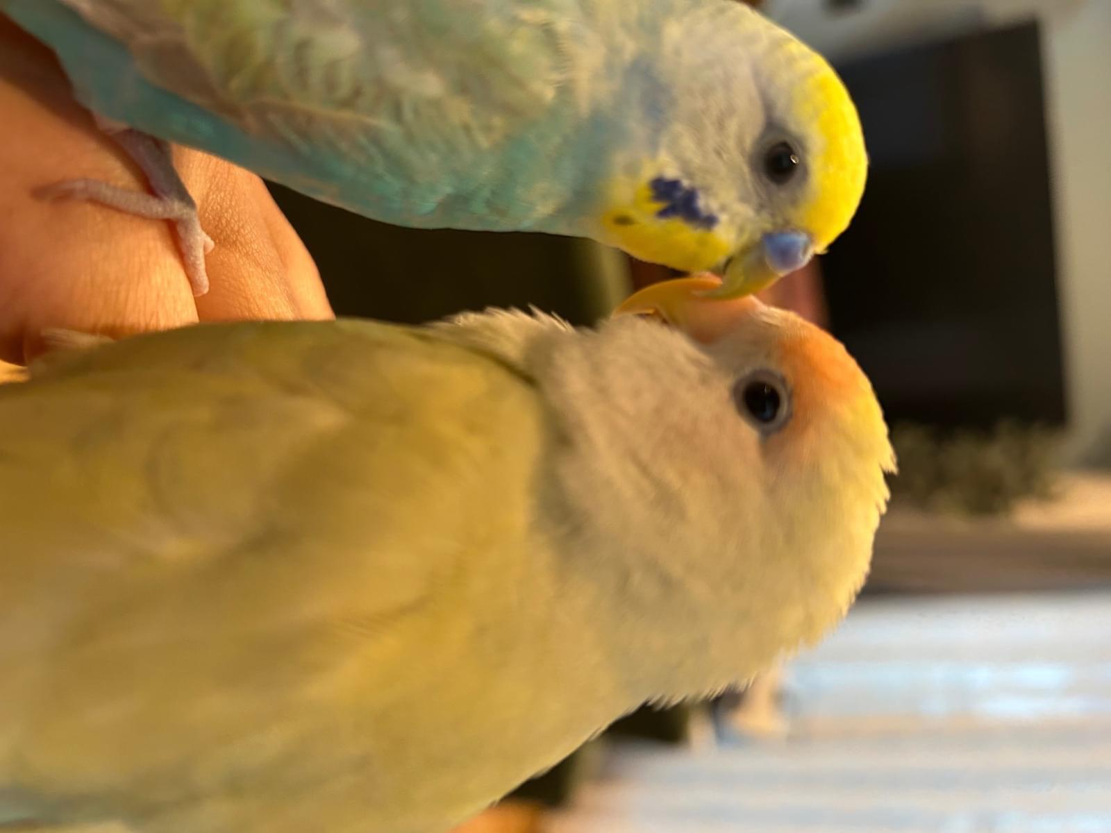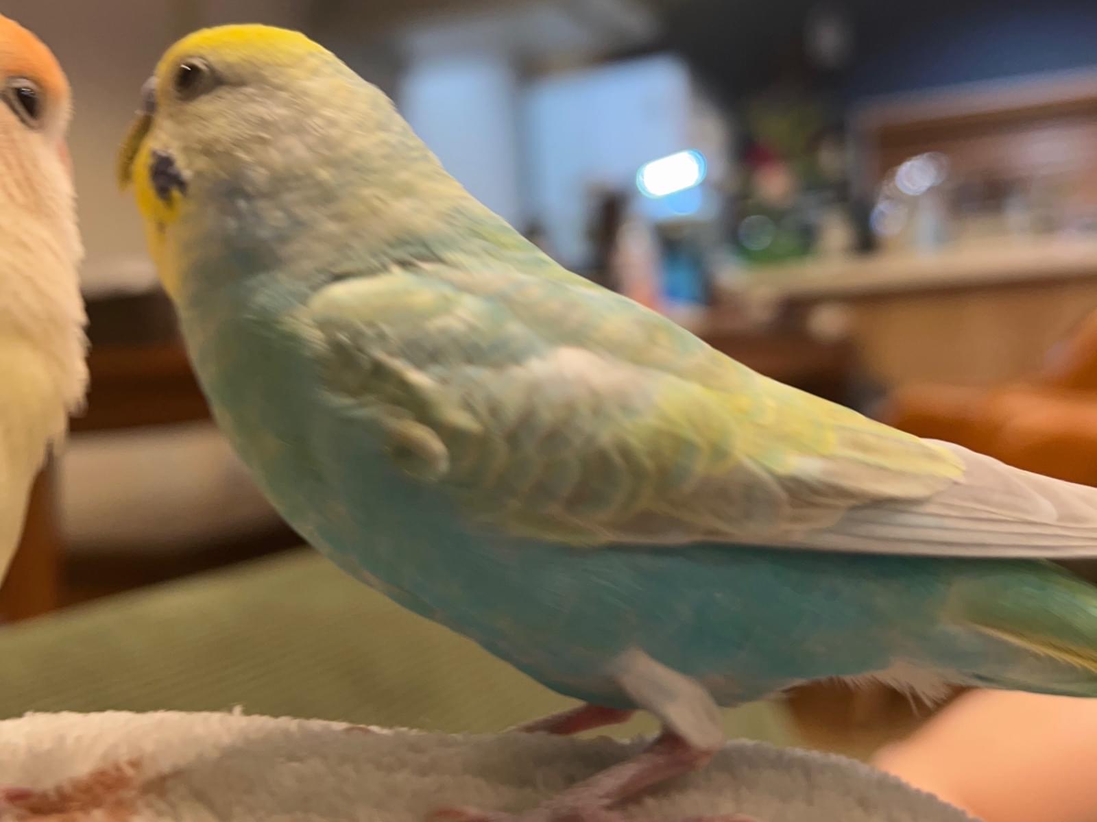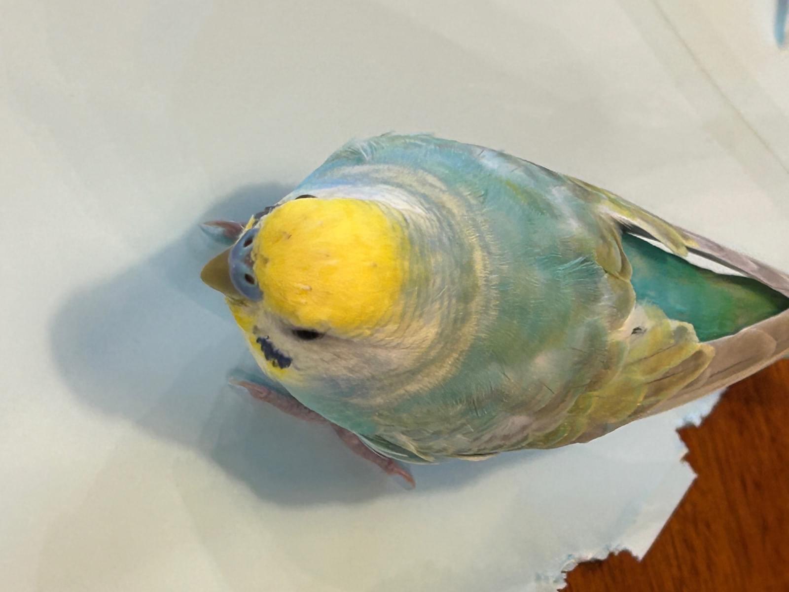 黄色い頭と水色の体のセキセイインコのレインボーを探しています。