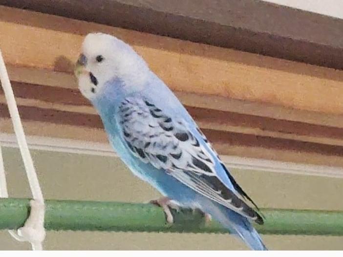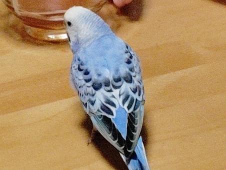 ブルーのセキセイインコ 頭は白 鼻は青色