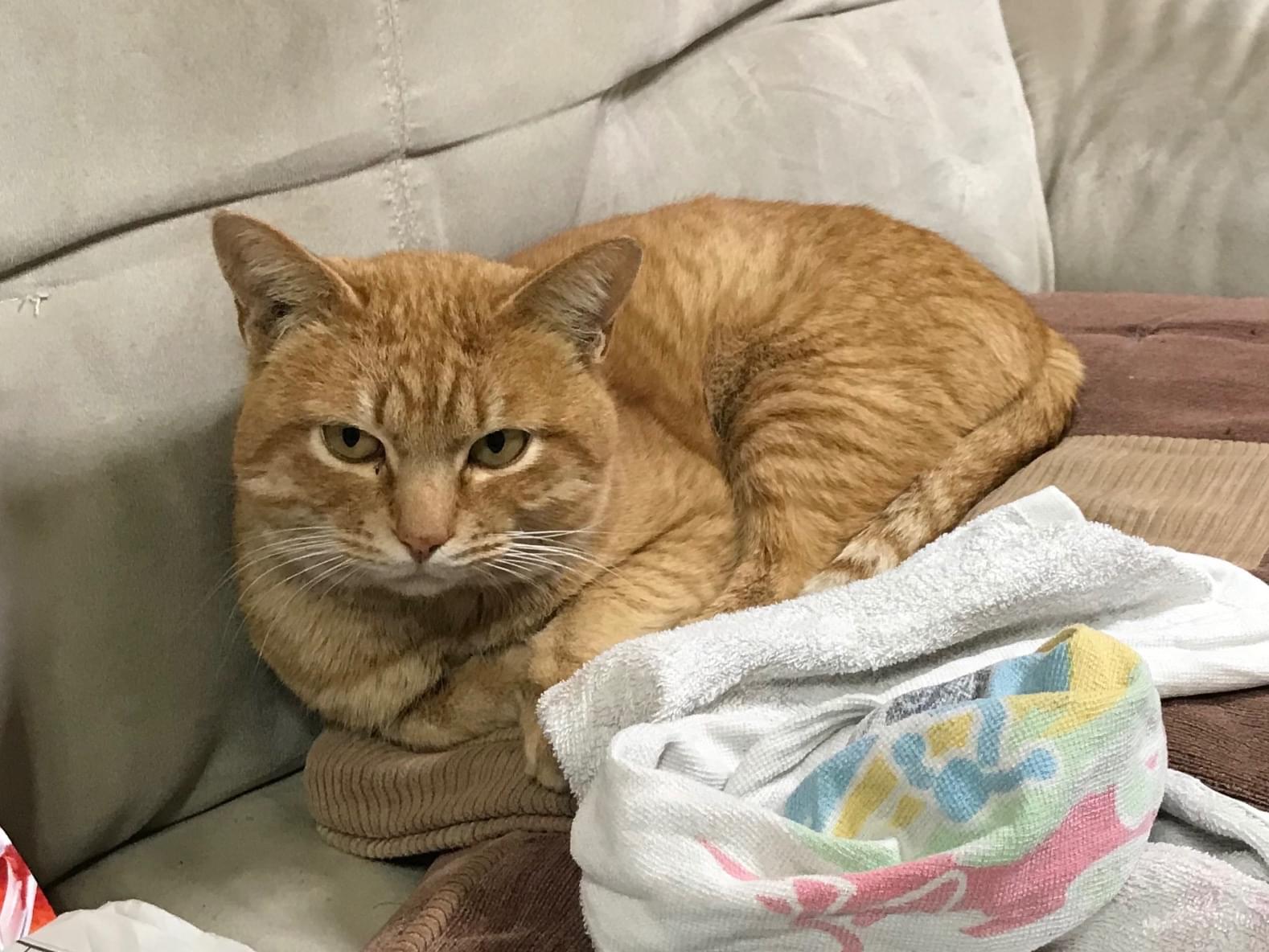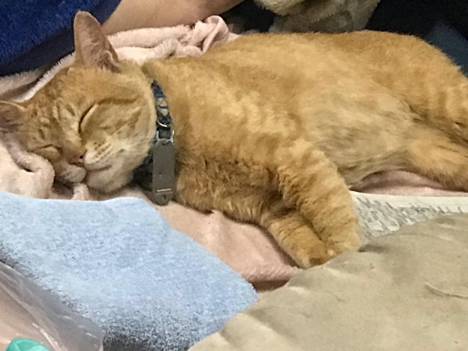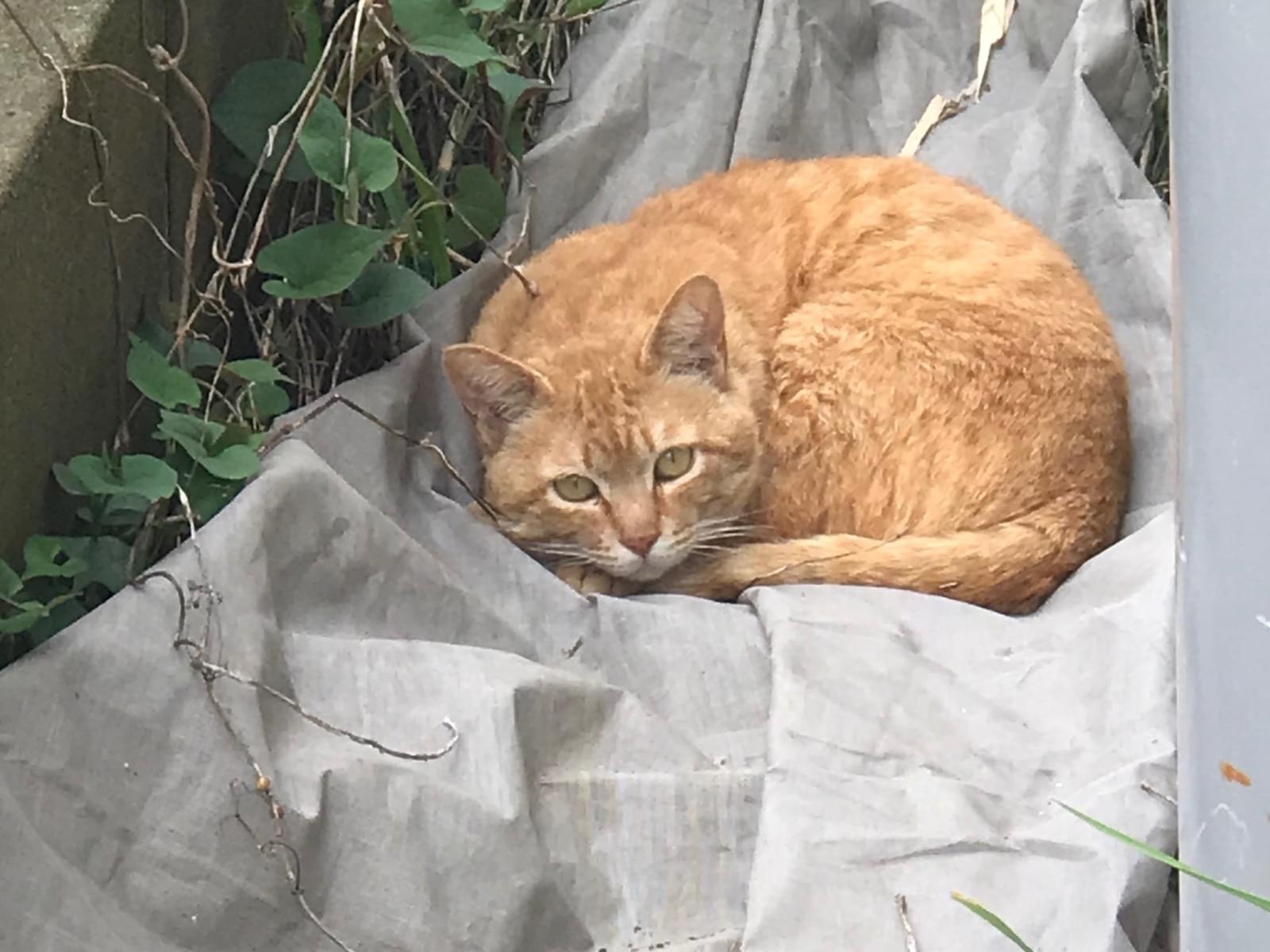 猫の特徴→茶トラ・オス猫・がっしり体型・人慣れした性格・去勢はしていません。マイクロチップはありません。