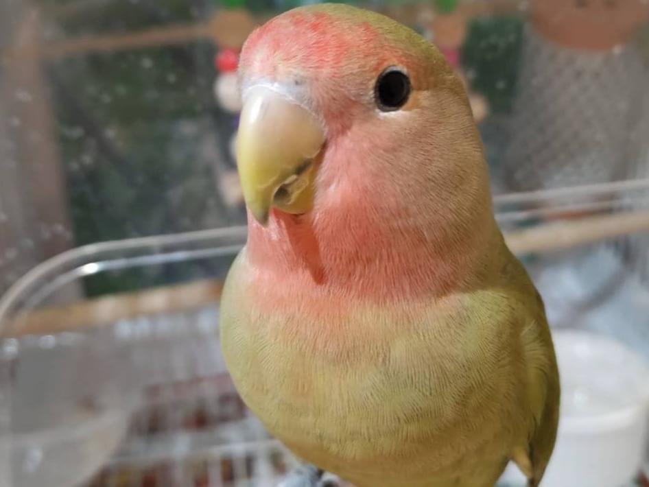 身体の特徴は緑で顔が赤いノーマルコザクラインコです。