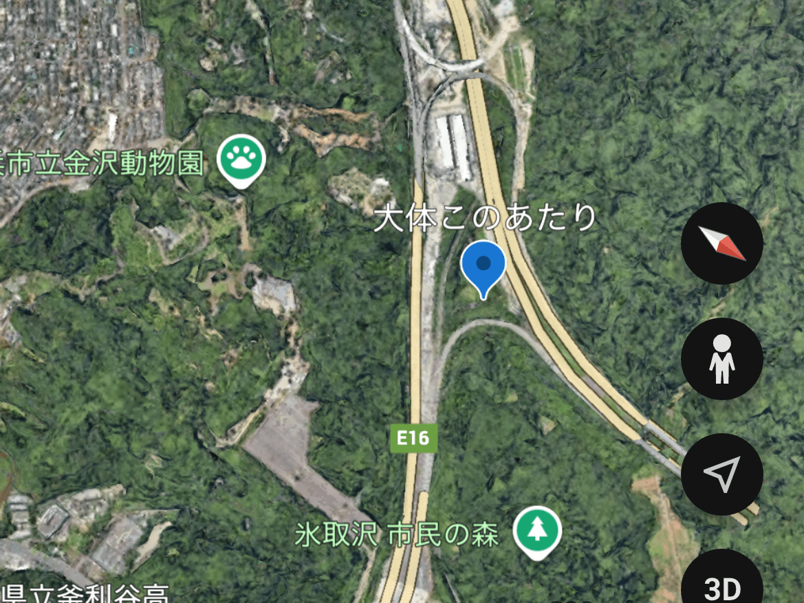 氷取沢町→金沢動物園間のハイキングコース。トンネルの先。視界が開けた場所。