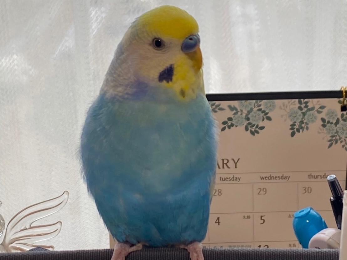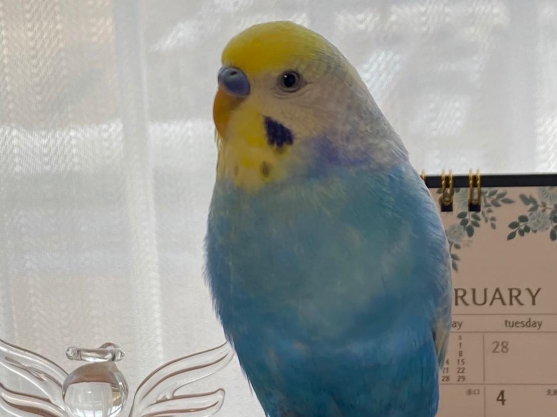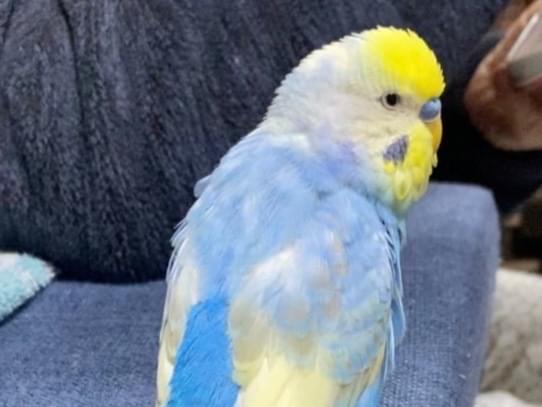 セキセイインコ(レインボーカラー)頭は鮮やかなイエローです。羽は水色です。おしゃべりします!