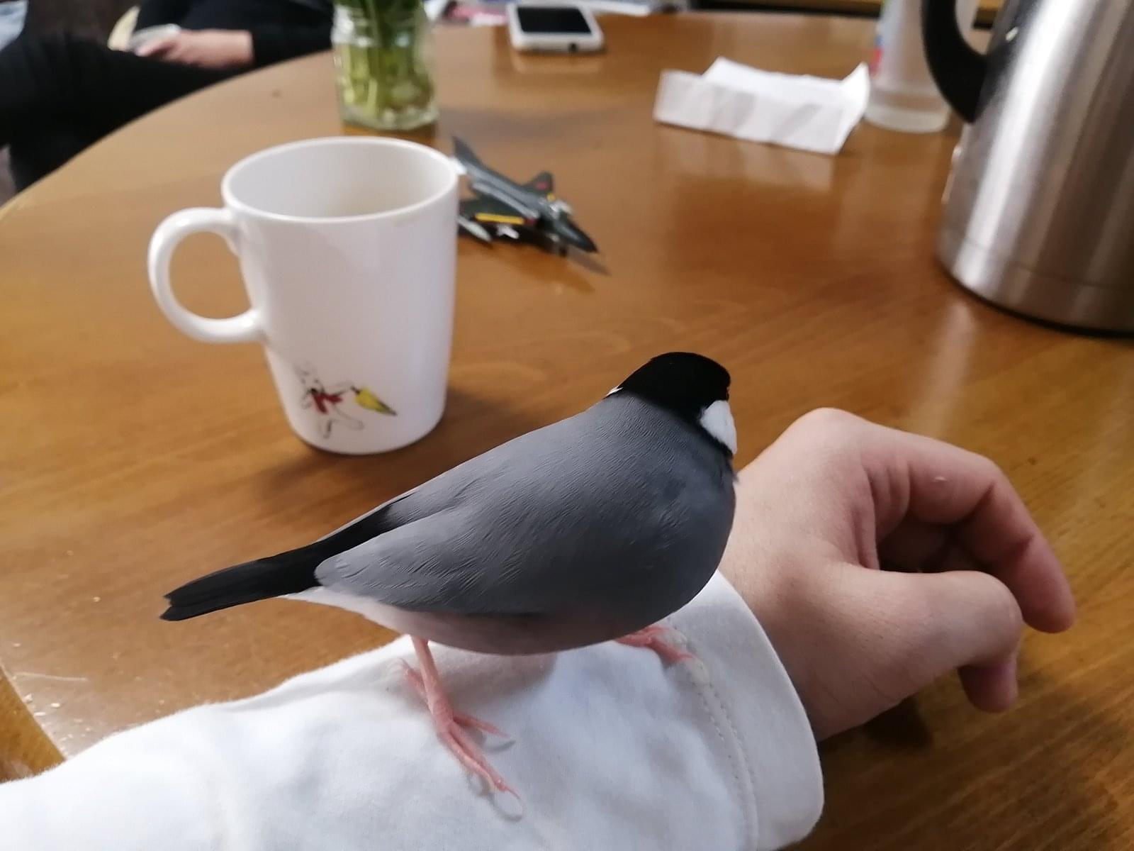 性格は人懐っこくて手をかざすと「ぴちょんちょんちょんちょびいーよちょぼいーよ」と言いながら手に乗ってダンスをする。